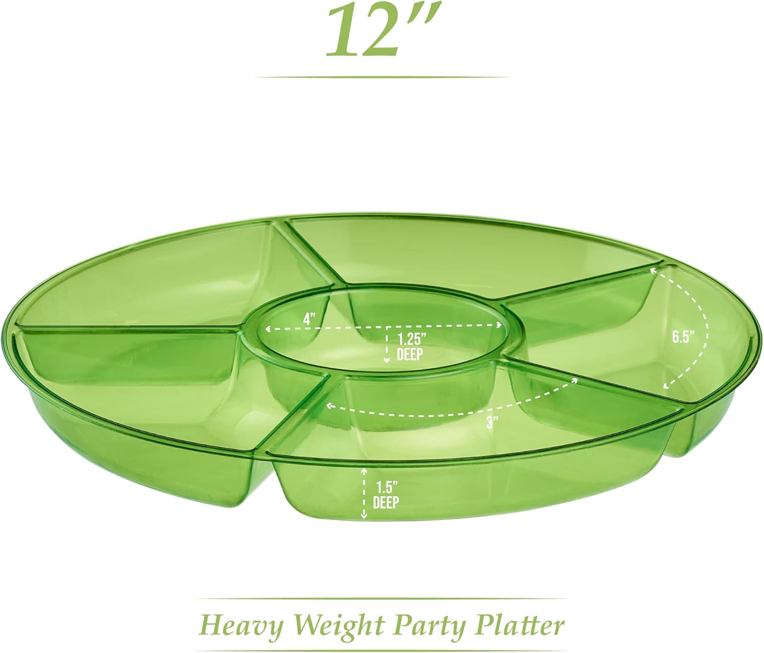 Plasticpro 6 Sectional Round Plastic Serving Tray/Platter (4, Green)