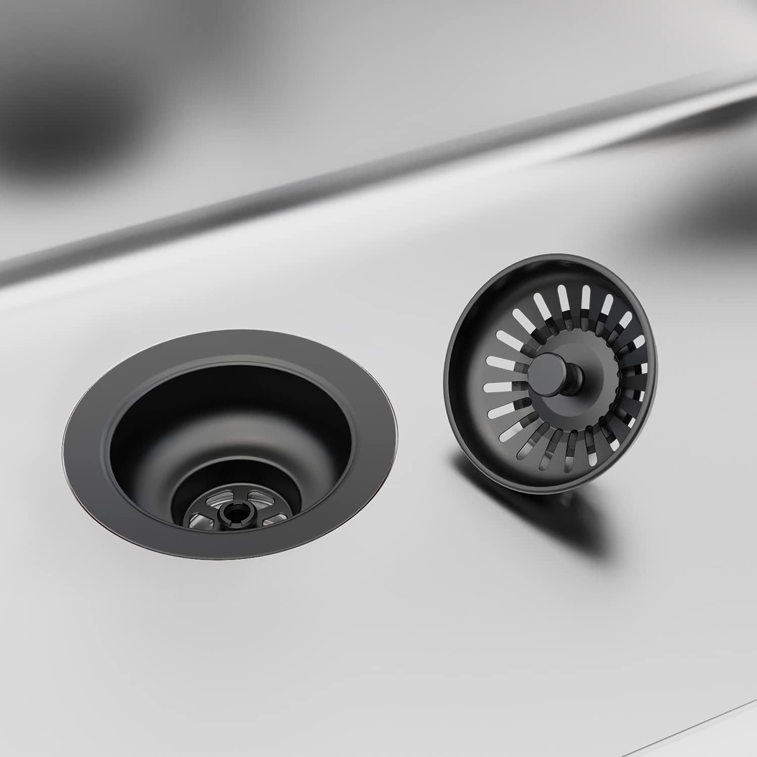 - STRAINER INCLUDED: Our built-in removable strainer basket catches debris before it clogs your plumbing and doubles as a water and drain plug. Push down to stop water from draining, pull up to allow drainage