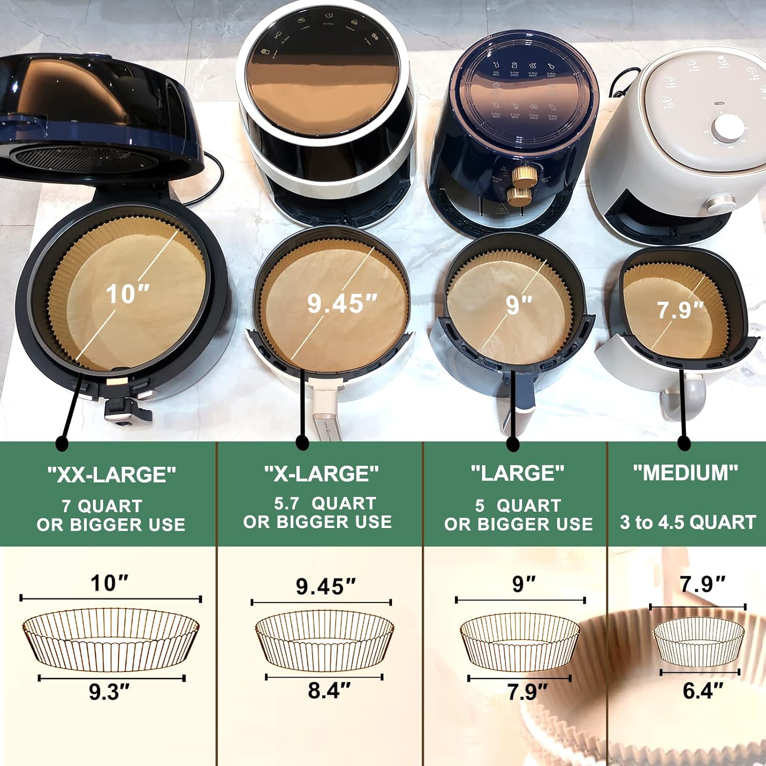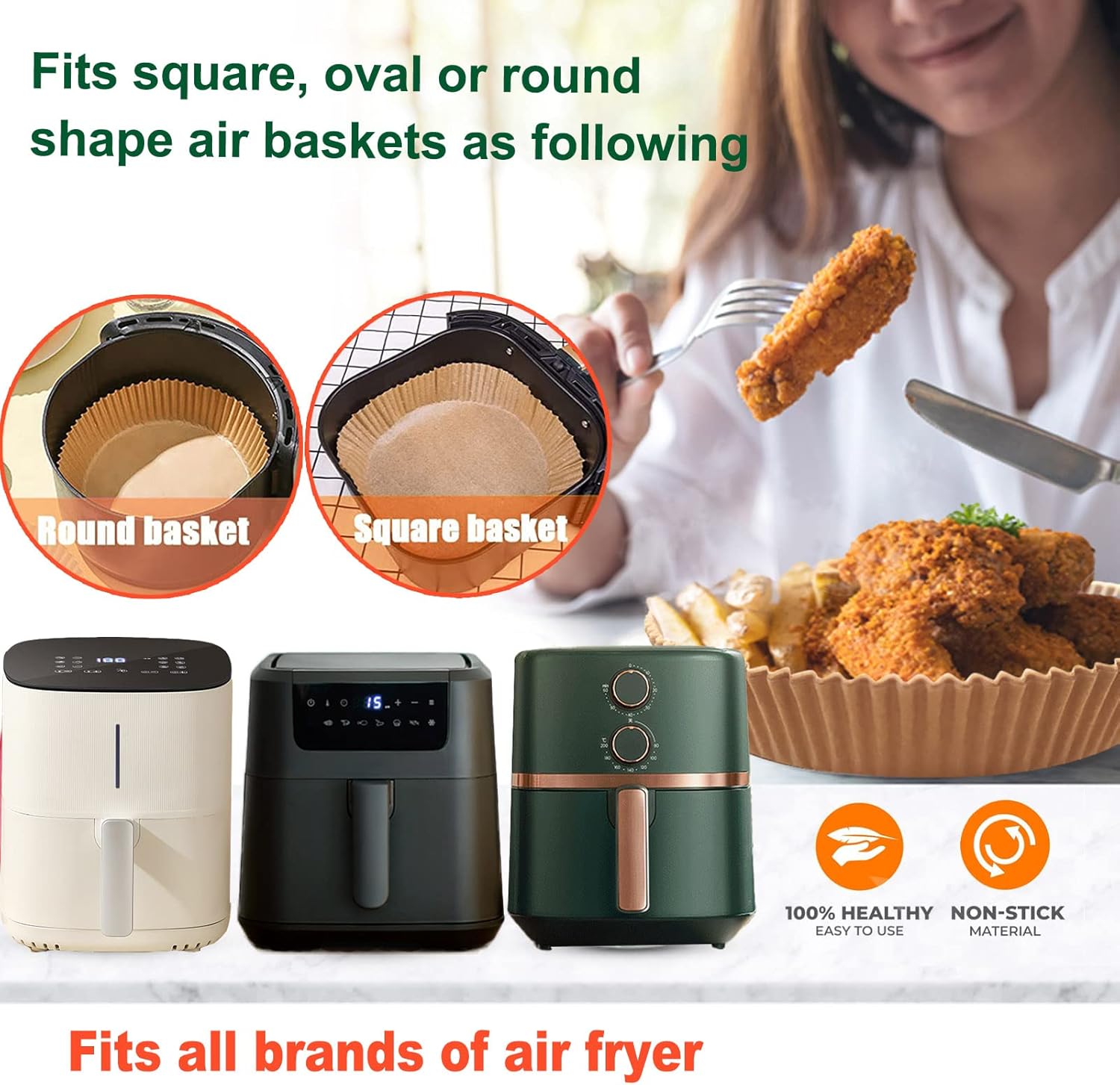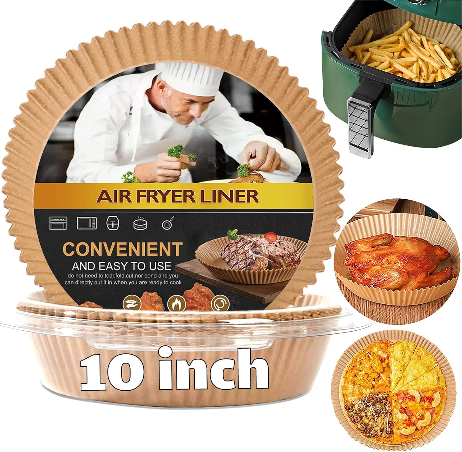 - 【Easy to Use】These non-stick air fryer disposable paper liner are designed with a round bowl shape, which do not need to tear, fold, cut, nor bend, and you can directly put it in when you are ready to cook. Its heightened edge 4.5cm can protect the side of fryers and prevent food from sticking to them.