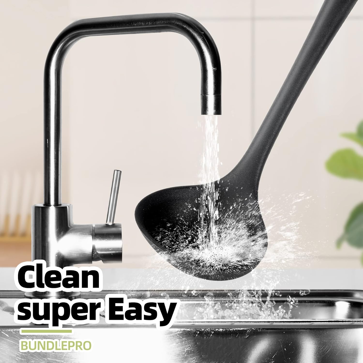 - ➤ Enjoy Your Cooking Time: The cooking utensil set are stylish and beautiful to decorate your kitchen. What’s more, the humanized design handle is soft and comfortable, just enjoy your each cooking time. The soft food-grade silicone head is designed for noise-free cooking. The deepening design of the spoon makes it more convenient to hold the soup. Whether it is used for stirring or serving soup. Our silicone ladle spoon will add more fun to your kitchen!