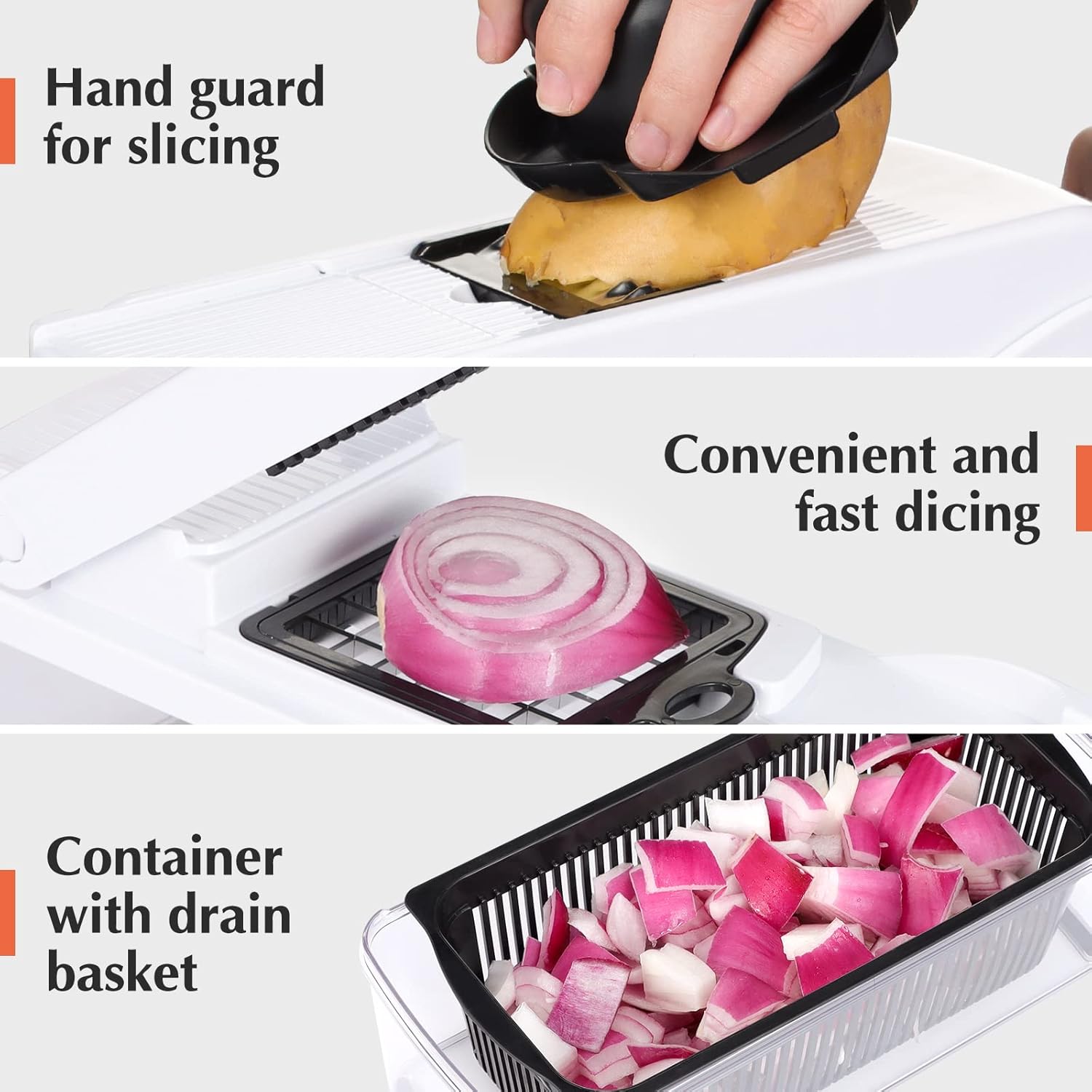 - 🧅Easy to Store: Everything can be stored inside the container when not in use. Save the space and you don’t worry about the counter becoming mixed.