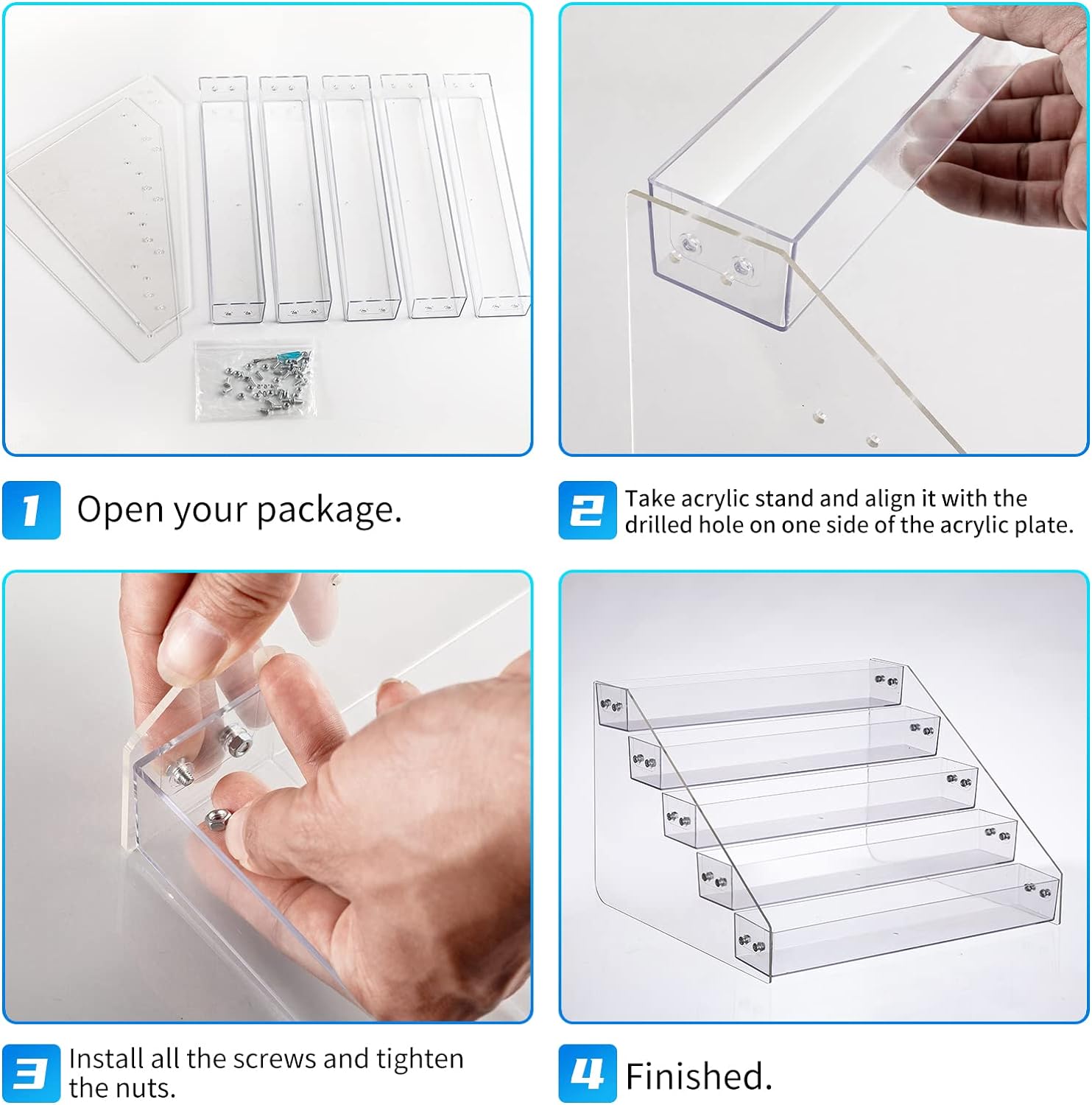 - 【Safe and Durable】- The tiered spice rack is made of acrylic plate, which contains no BPA, so you can use it safely in your kitchen. Acrylic plate has the characteristics of high hardness at the same time, can be placed many bottles of seasoning for many years without deformation.