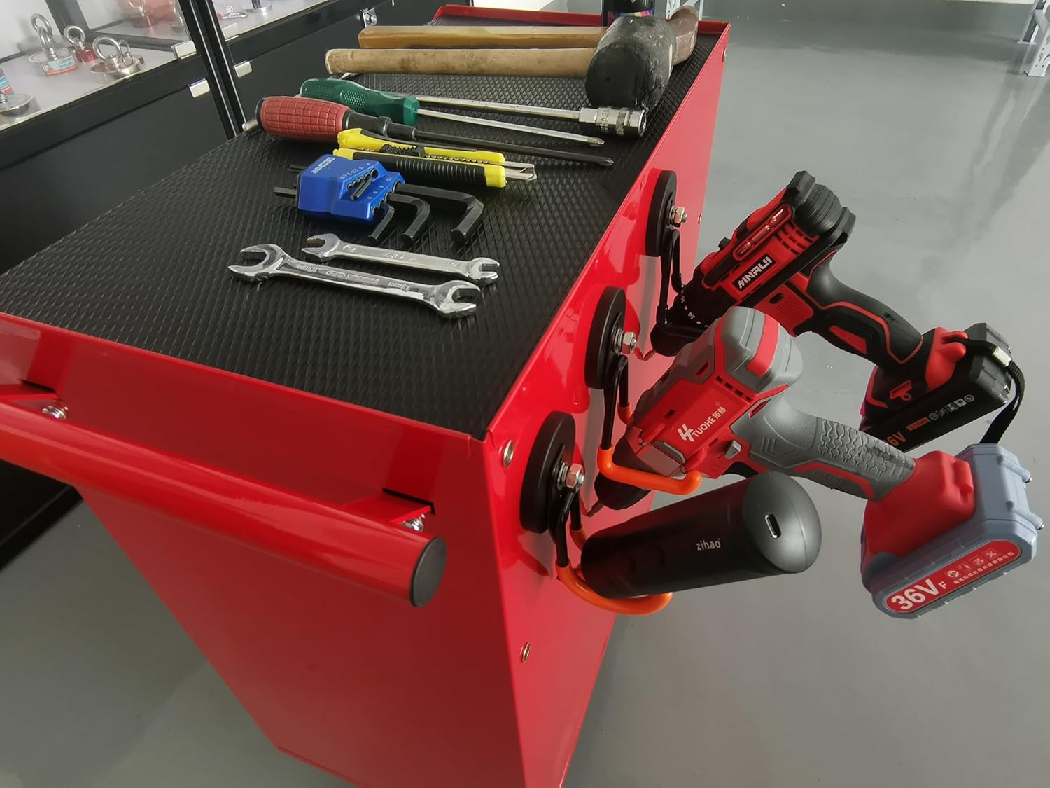 - [Quicky Access Release Garage Hooks] Simply attach, and keep cordless drills, and impact drivers at your fingertips and easily accessible when needed, heavy-duty magnetic hooks can save space and time You always know where tools are and can find them quickly
