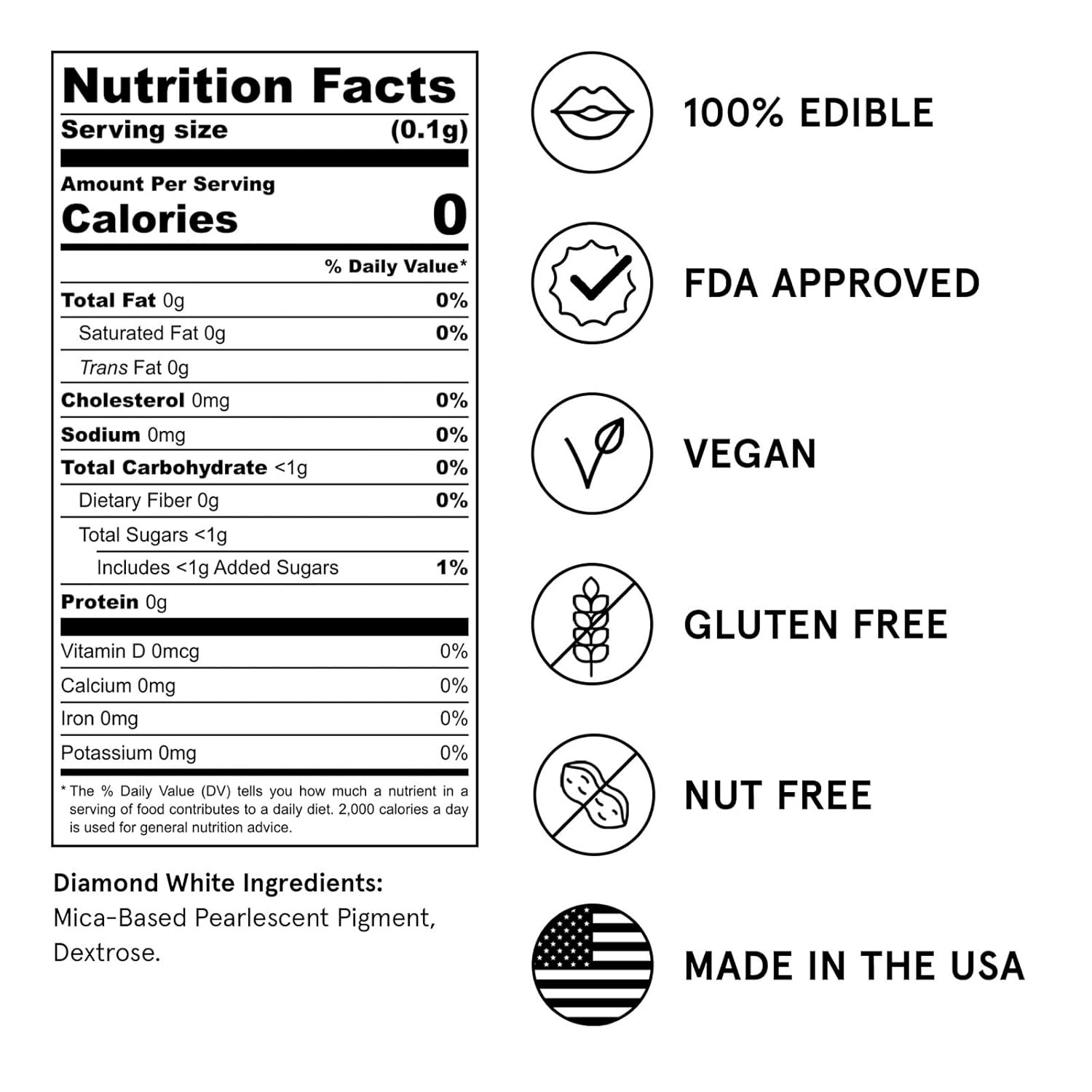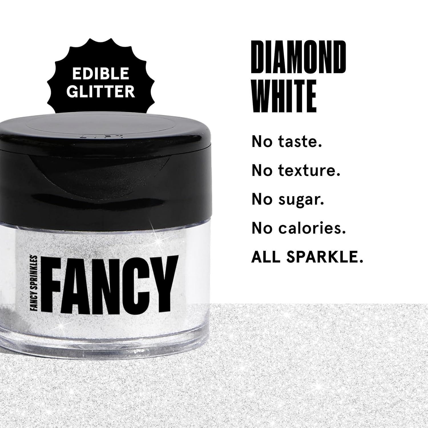 Fancy Sprinkles Diamond White Premium Edible Glitter, 100% Edible Glitter for Sparkling Food & Drinks No Taste or Texture (4gm)