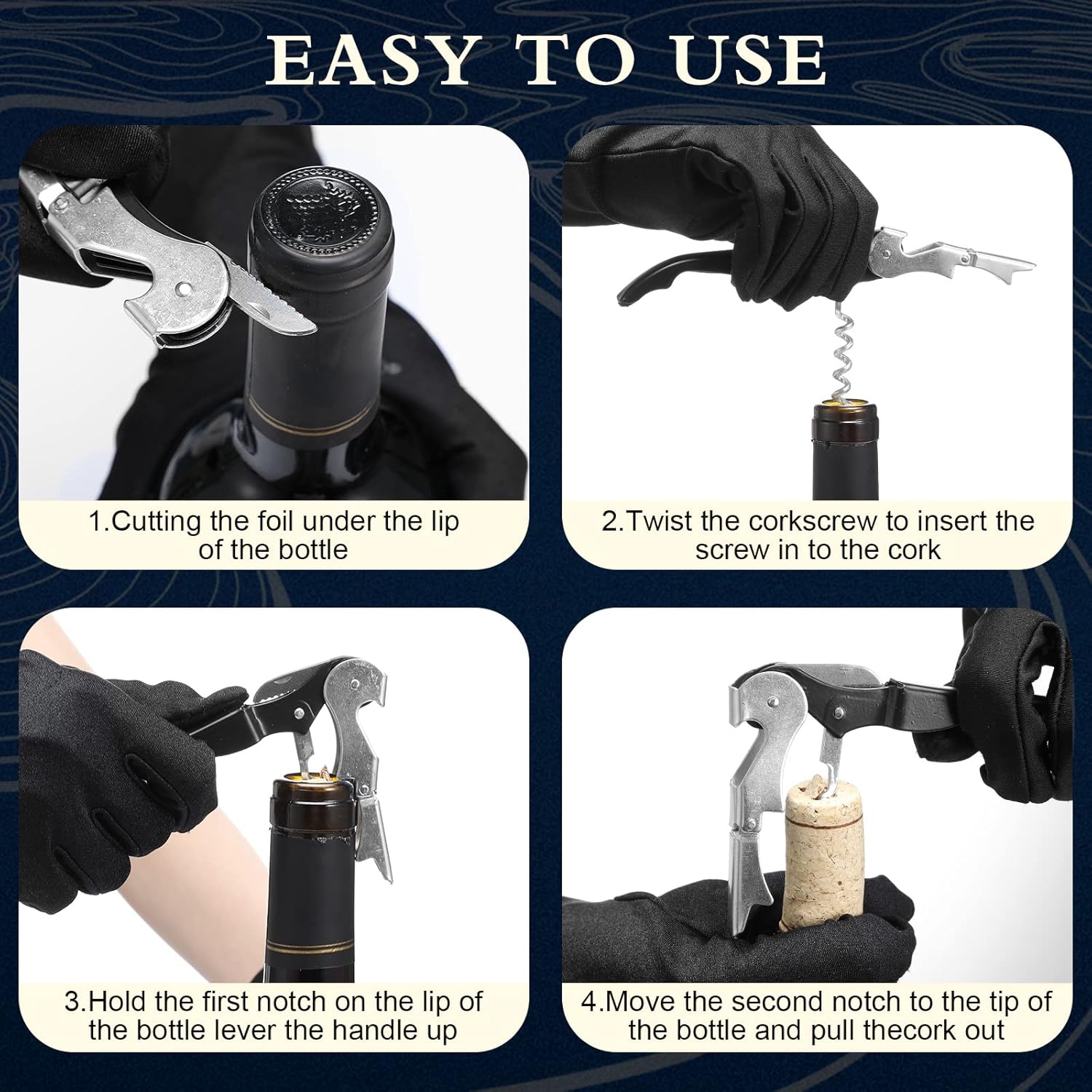- Widely Appliable: this wine corkscrew with foil cutter works well with old, natural, brittle or synthetic cork and is widely applied in your home, bar, restaurant, for sommeliers, bartenders, waiters and daily needs in home, or as a Father's Day gift, Christmas gift, bartender gift for wine lovers