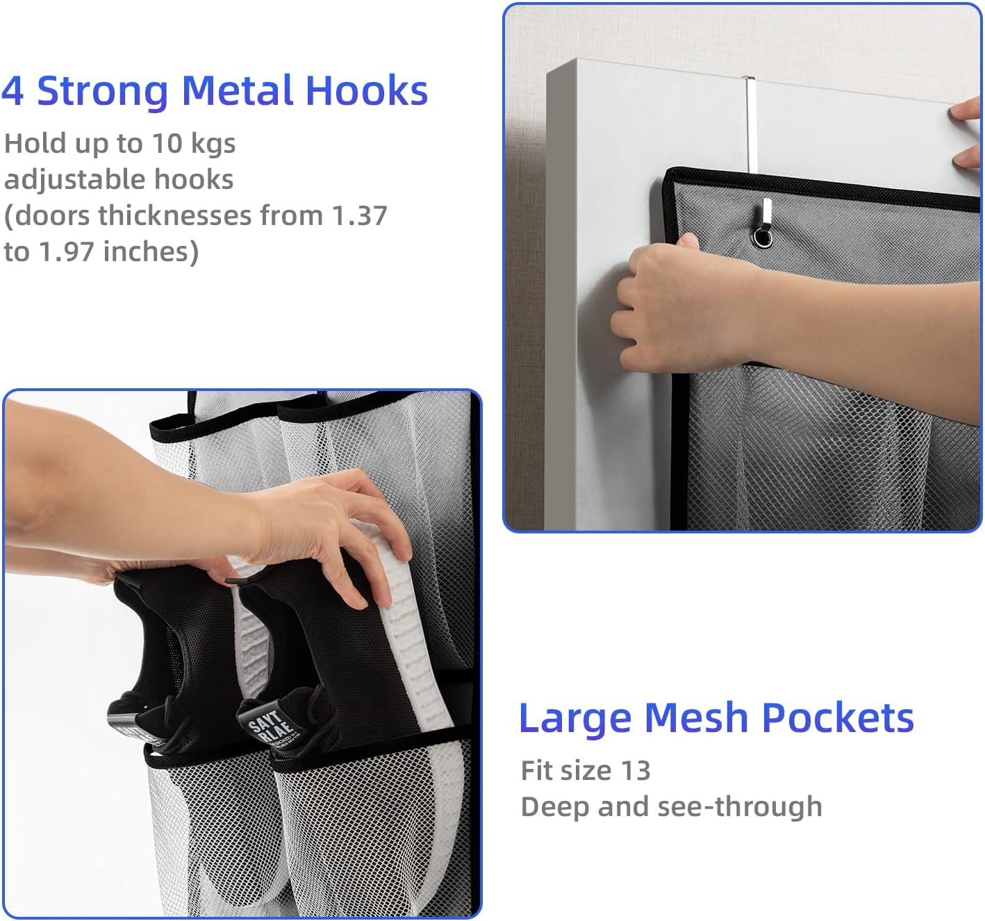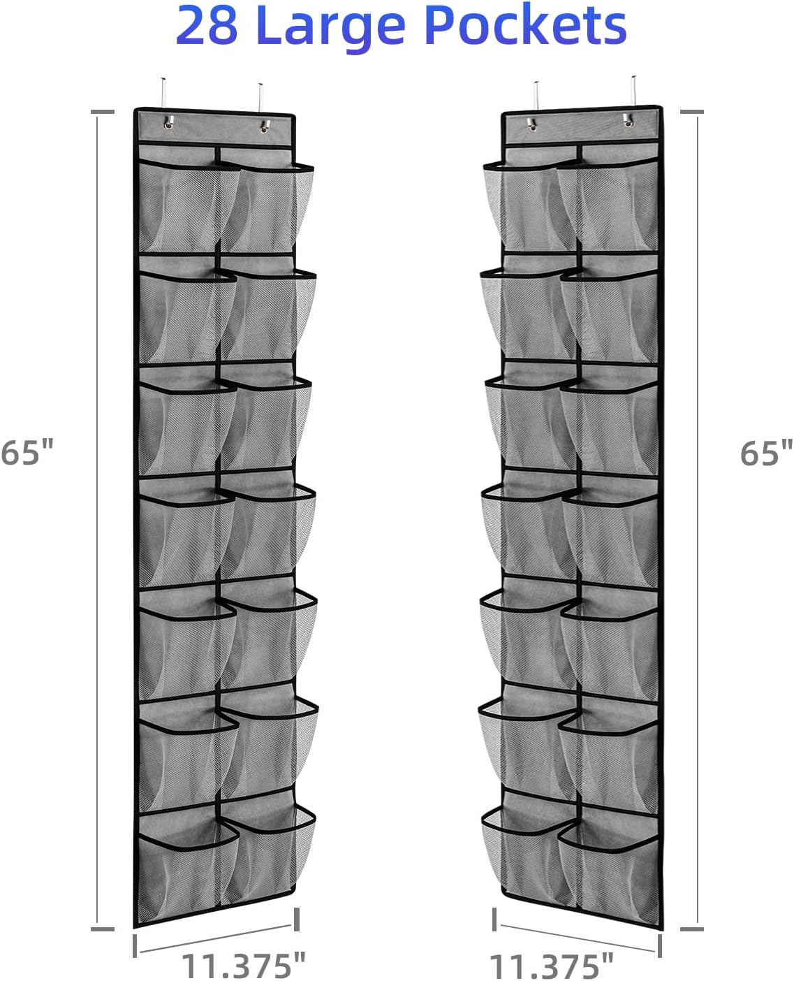- ※【28 Large Deep Pockets in Total 】Each door shoe organizer has 14 pockets , 28 Pockets in total. can hang 14 pairs of shoes at least and holding the shoes of your whole family.