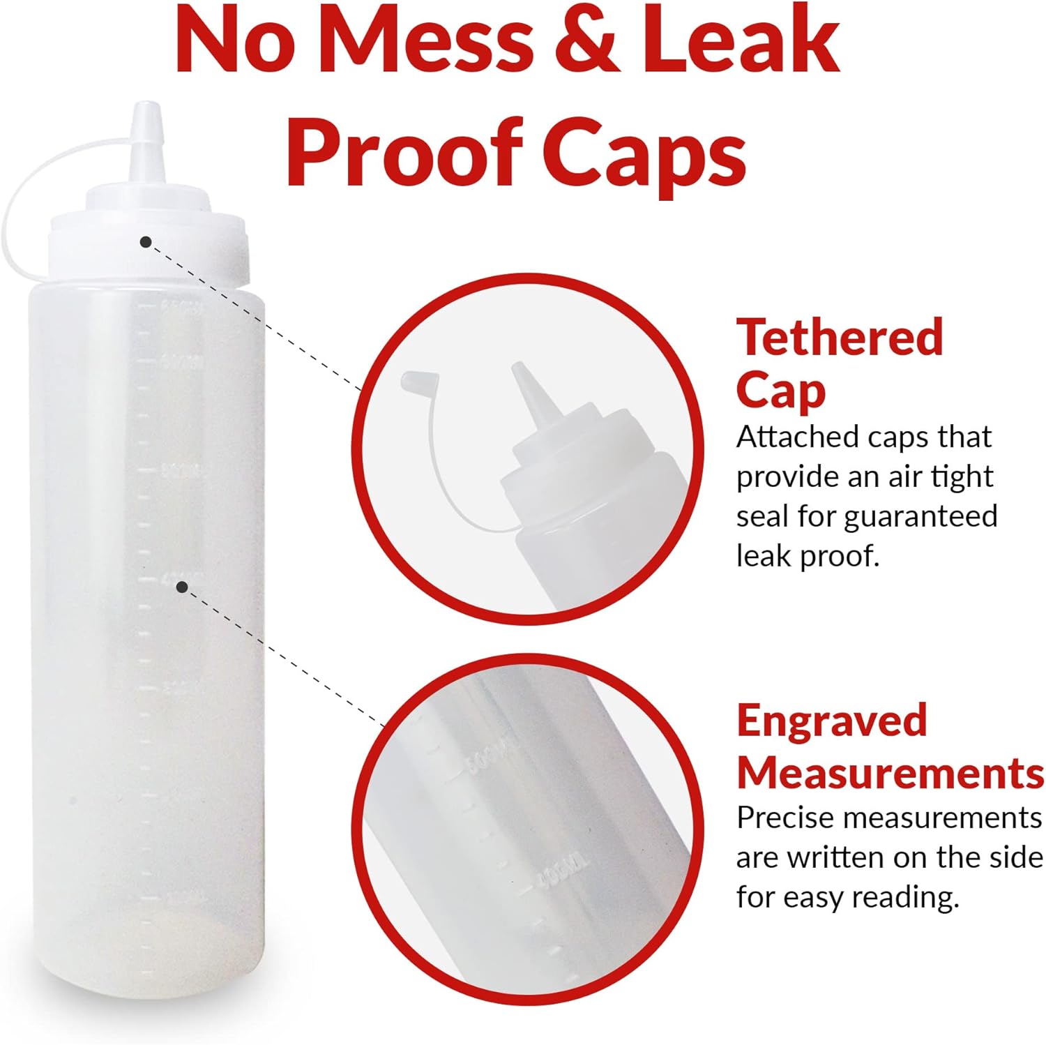 - Convenient Design: Tethered caps prevent spills and leakage for mess-free use.