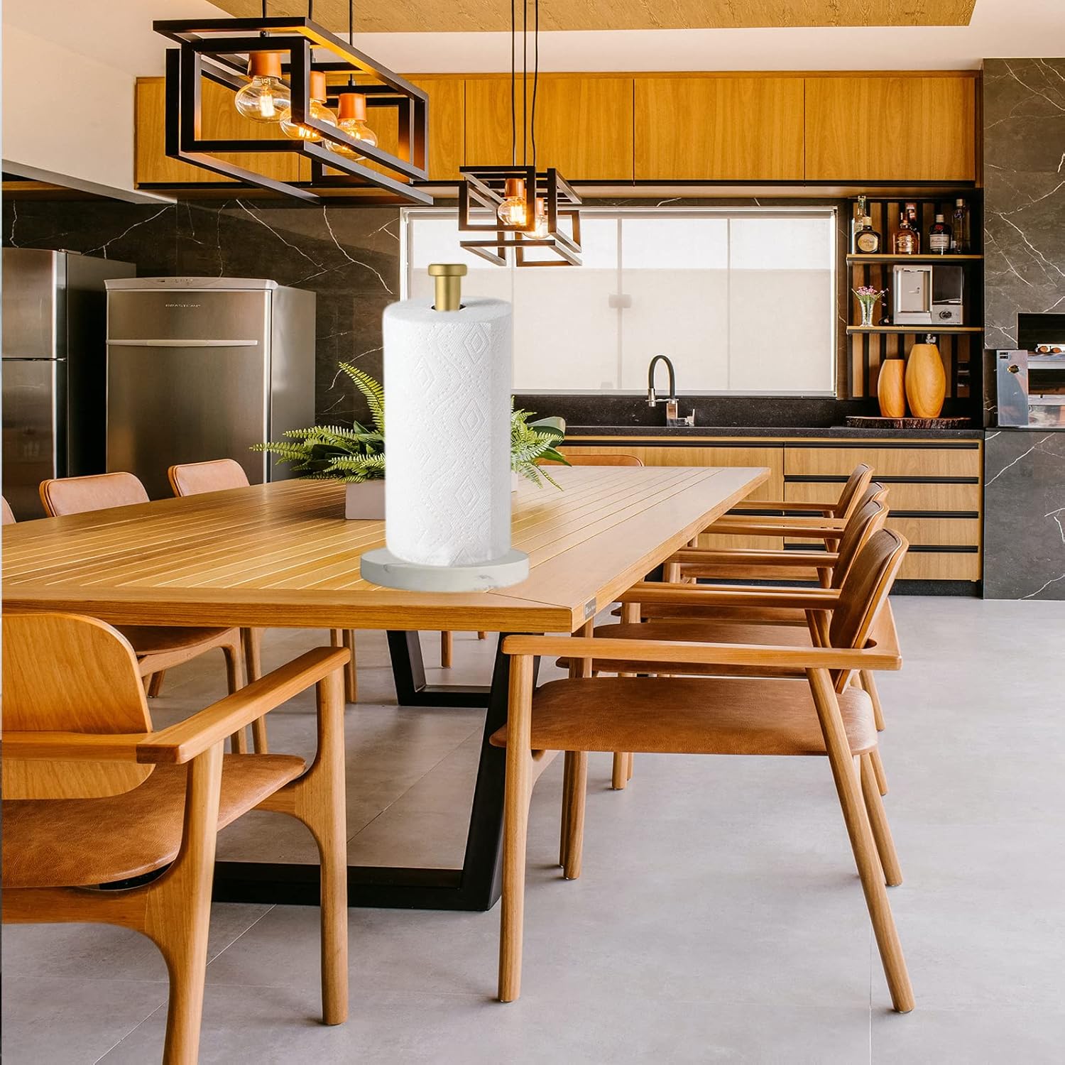 Paper Towel Holder Countertop, Standing Paper Towel Roll Holder for Kitchen Bathroom, with Weighted Marble Base for One-Handed Operation (Gold), Gold Paper Towel Holder, Marble