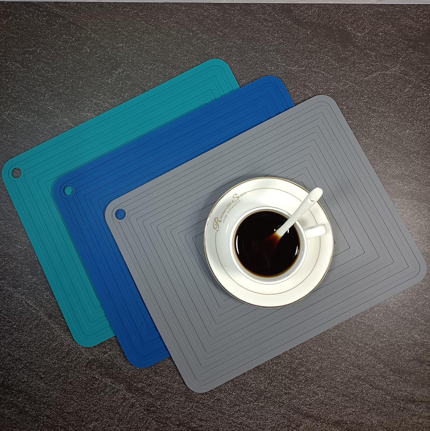 Silicone Trivets Mats Set, Trivets for Hot Dishes, Pots and Pans, 9 x 12 Inches Blue Silicone Hot Pads for Kitchen, Multi-Purpose Heat Resistant Pot Holder Mat Set 2