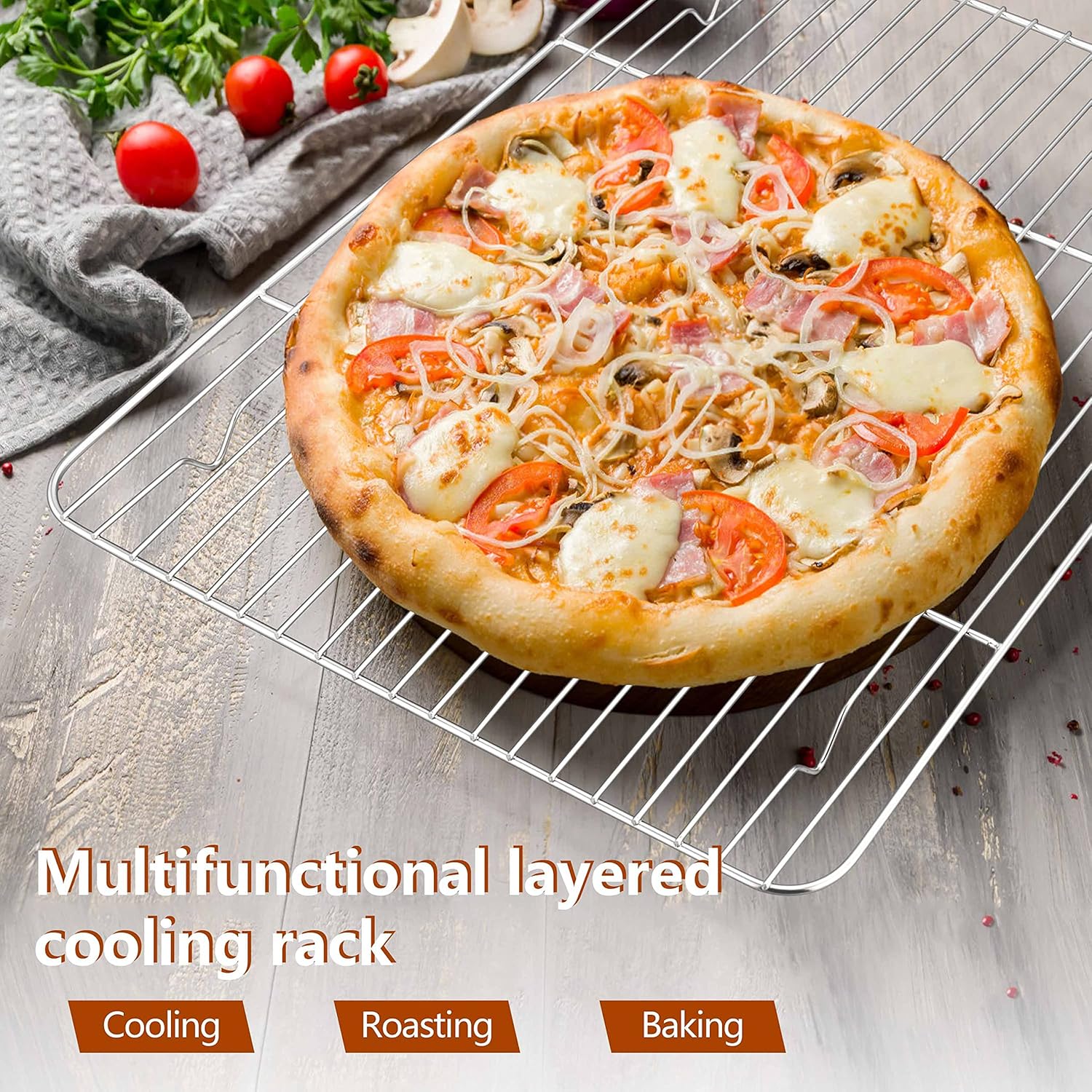 - Multi-use pan, rectangular large size roasting pan and V-shaped rack fit in all types of convection ovens, good combination for roasting turkeys, hams, prime ribs, fish, chickens and lambs, also great for baking lasagna, brownie, casseroles, vegetables, ideal for preparing Thanksgiving dinner or Christmas party
