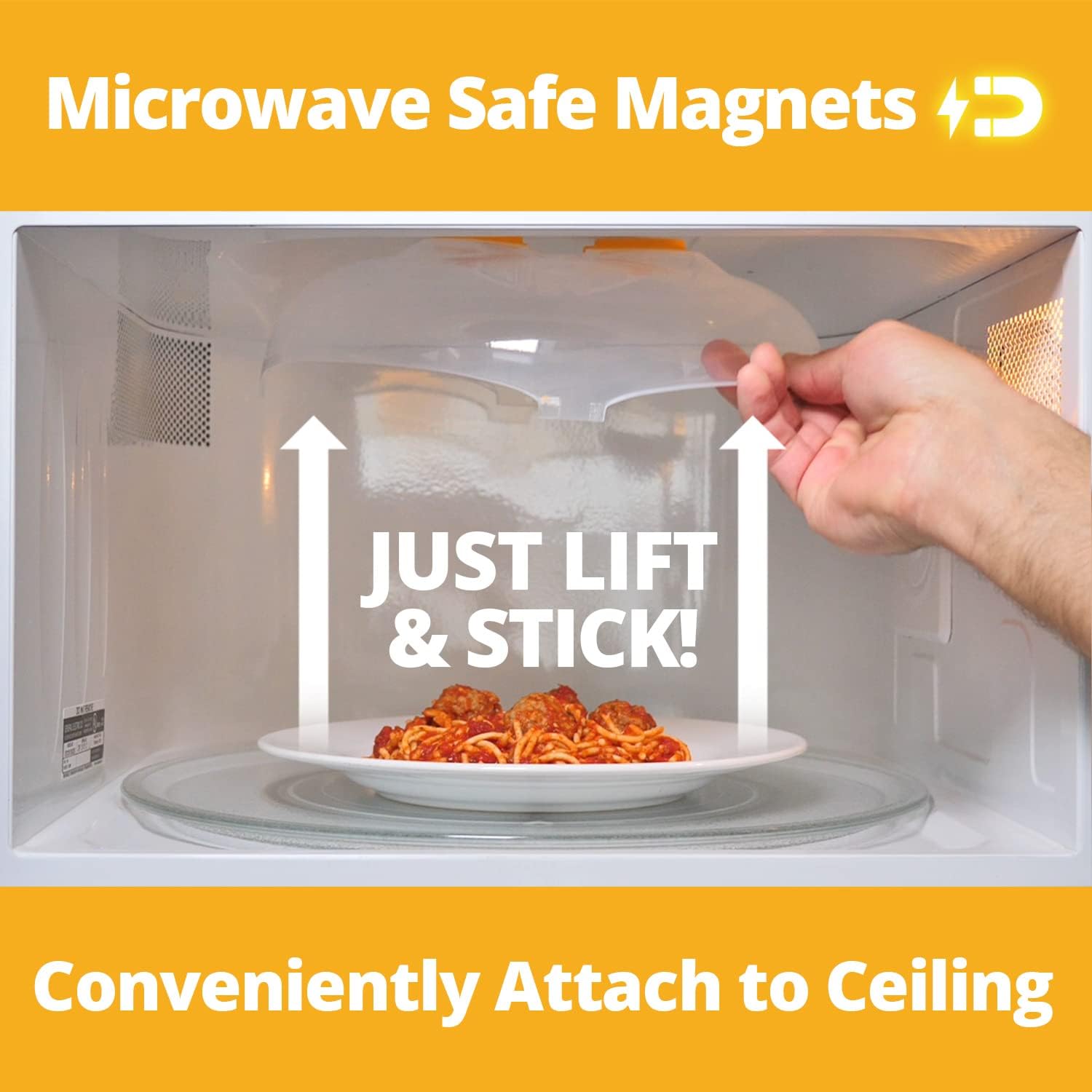 - SPLATTER PROTECTION FOR A SPOTLESS MICROWAVE: Avoid spills and splatters while reheating or cooking with our 12 X 11 in Magnetic Microwave Food Cover. It features built-in magnets for convenience, simply pull down the cover from the microwave ceiling whenever needed. Its easy-grip handle and steam vents allow for an effective, even food heating that's also mess-free.