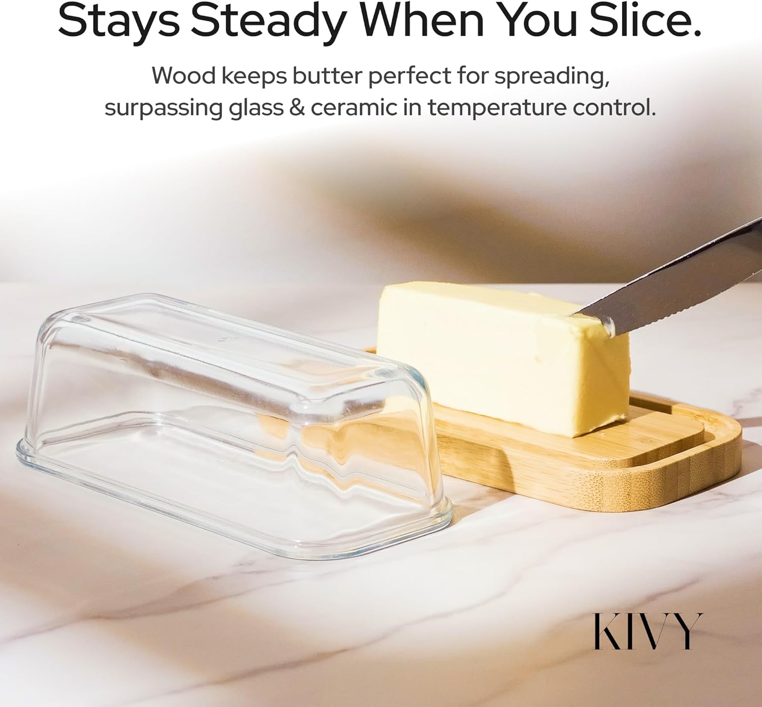 KIVY Glass butter dish with airtight lid that keeps butter soft - For countertop and refrigerator door shelf - Butter tray with lid fridge - Butter holder for counter - Covered butter dishes