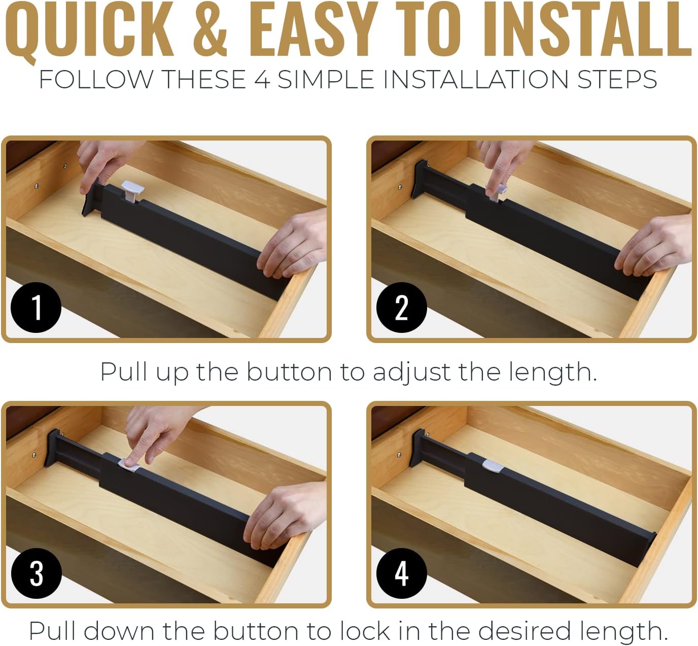 - Well-Designed Size: Includes 8 dividers, each 6 inches tall and expandable from 13 to 22 inches; customizable to fit most drawers and cabinets