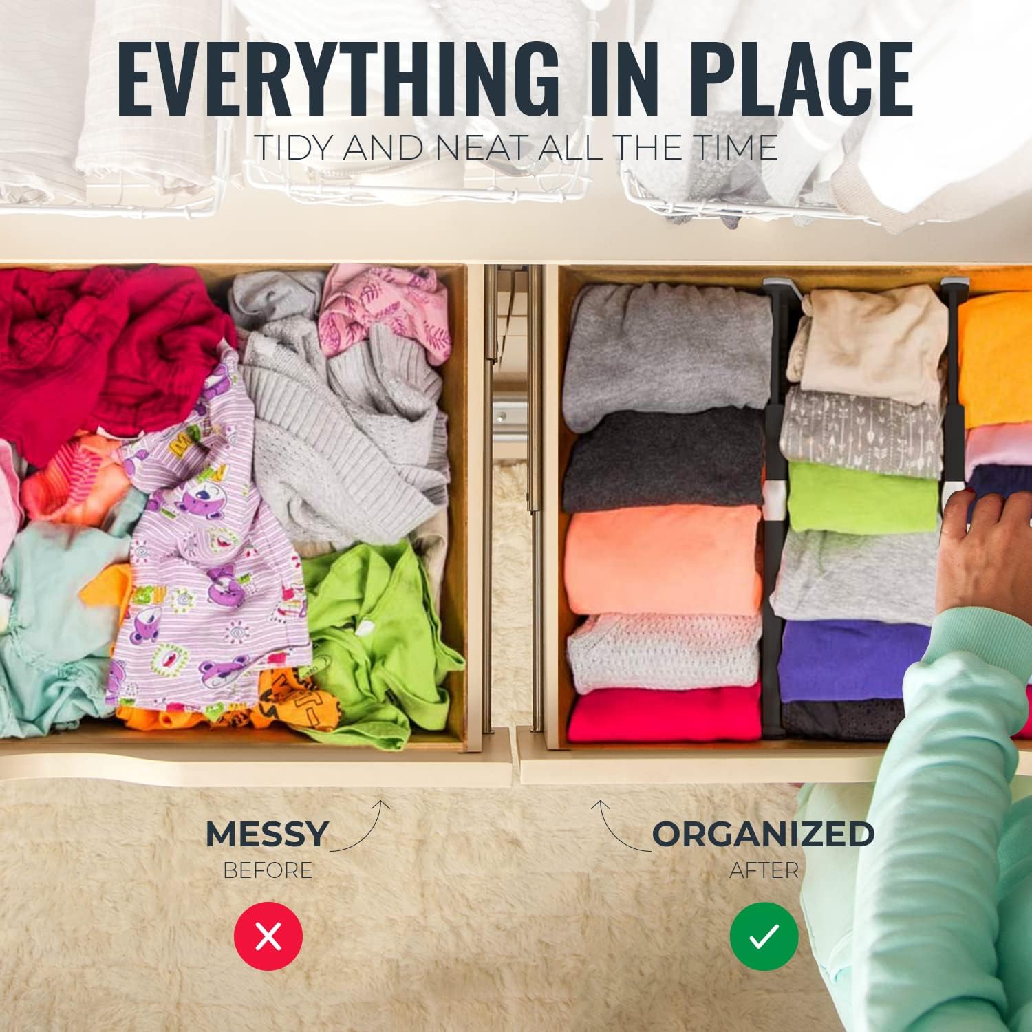 - Multipurpose for Home, Kitchen, Office: Ideal for organizing clothing, kitchen items, or office supplies; works effectively for clothes, cosmetics, silverware, utensils, and more