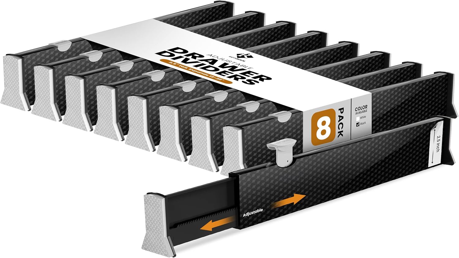- Well-Designed Size: Includes 8 dividers, each 2.5 inches tall and expandable from 13 to 22 inches; customizable to fit most drawers and cabinets
