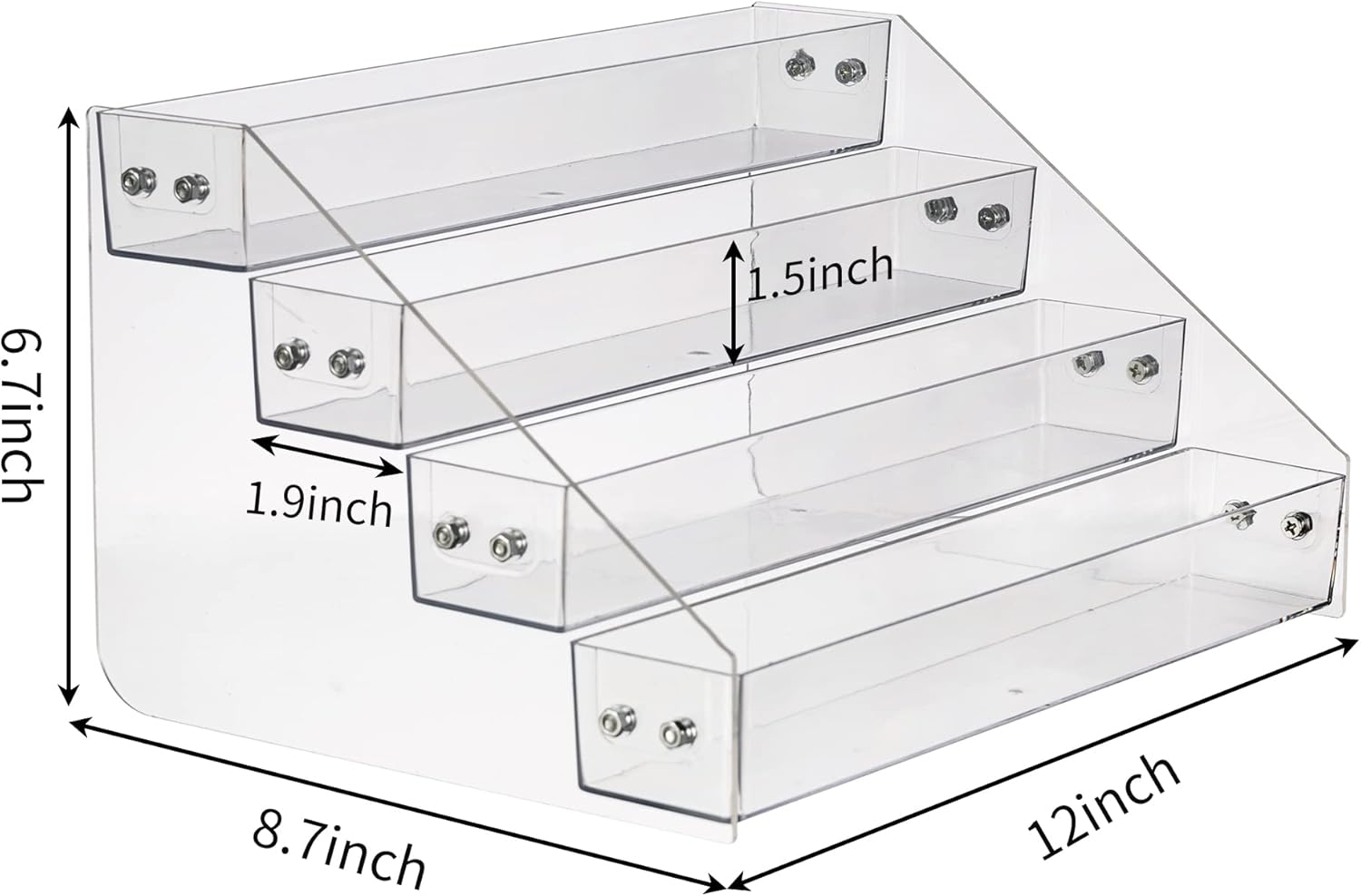 Acrylic Spice Rack, Tiered Spice Rack Shelf Seasoning Organizer for Countertop, Cabinet, Pantry, Kitchen Storage - 4 Tier