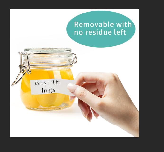 - Package: You receive 1 x 3 inch removable labels, 250 Sheets, Freezer Tape to write on/Waterproof Labels/Easy Peel Off Labels