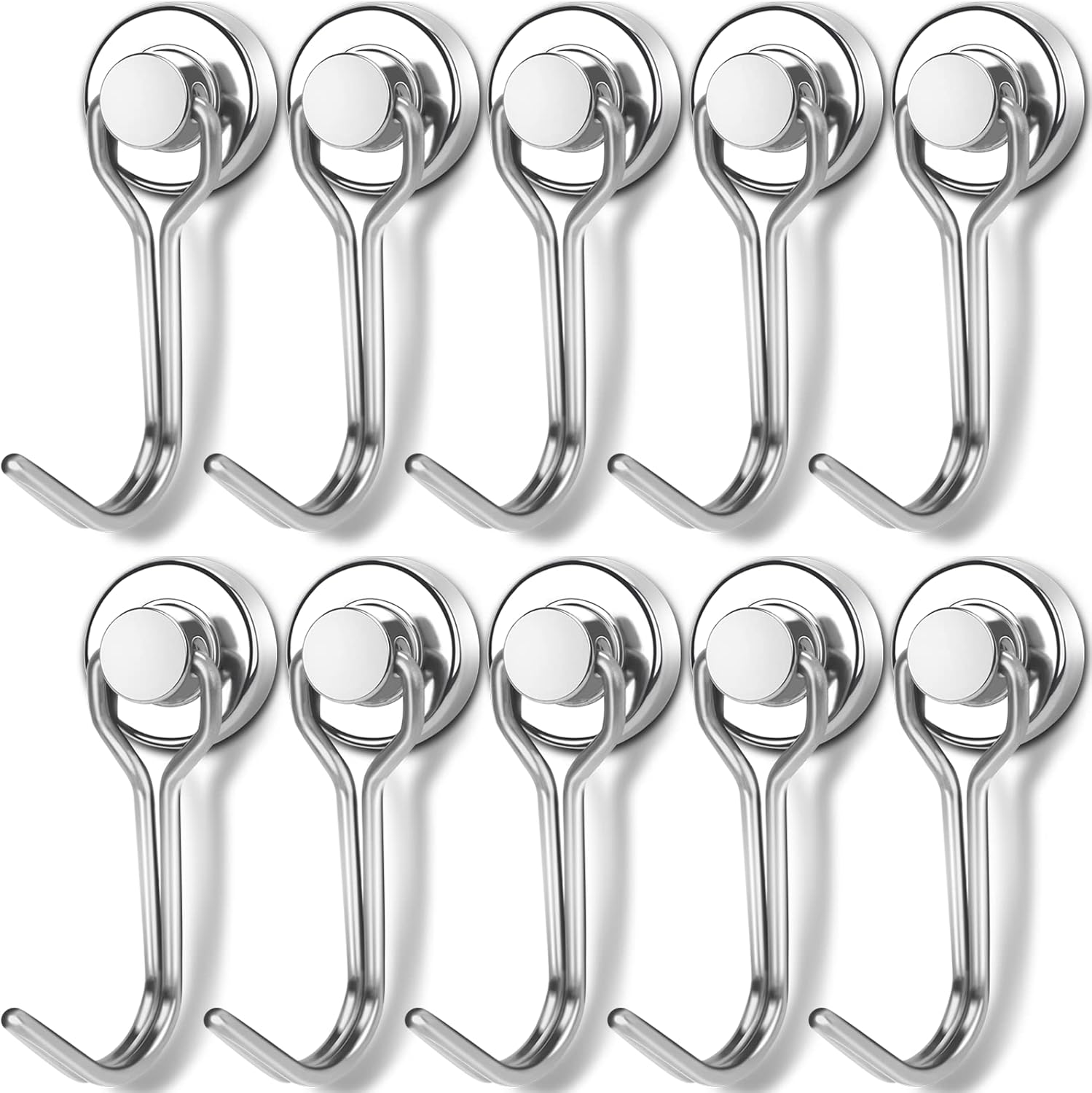 E BAVITE Swivel Swing Magnetic Hooks, 30LBS Powerful Strong Magnetic Hooks Perfect for Refrigerator, Kitchen,Pack of 10 Silver