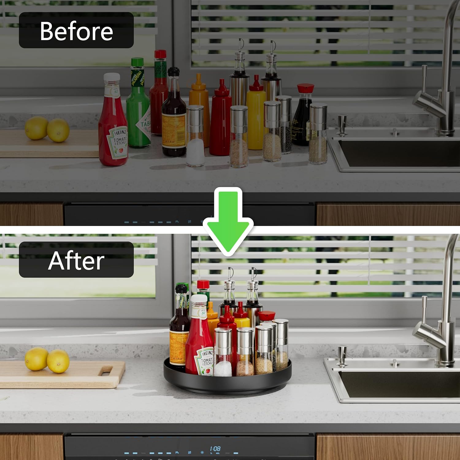 - Large Space Organizer:This lazy susan organizer measures 11 inch,providing more storage capacity in your deep base cabinets,upper shelves and cluttered corner countertop , Making the most of the limited space in your home to keep things neat and organized.