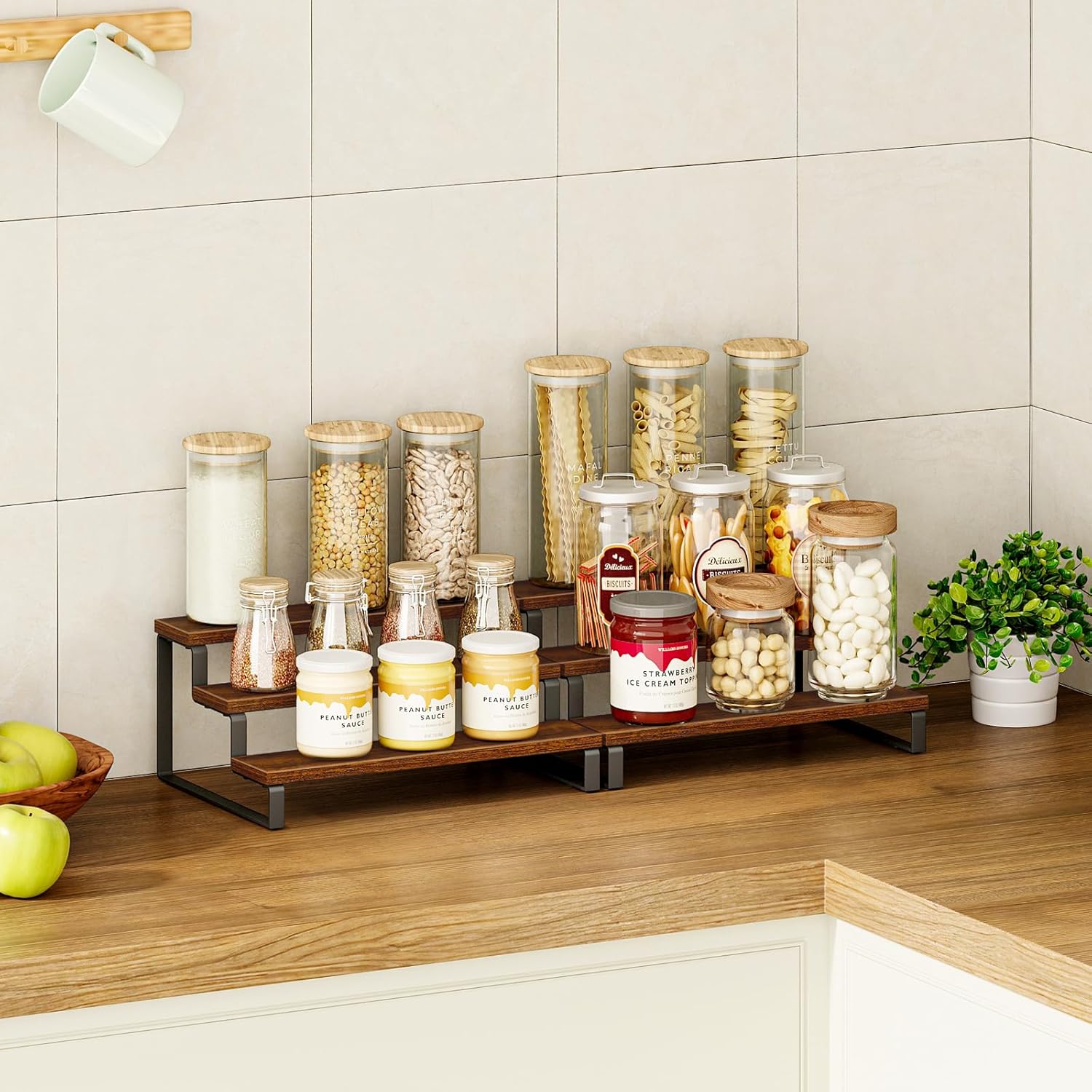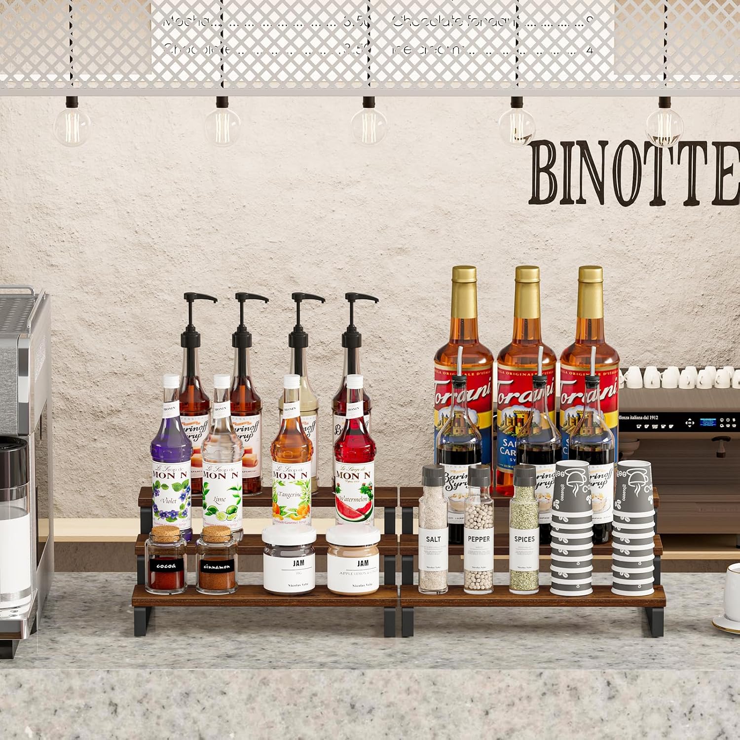 - Convenient Design: The size of this spice organizer: 13.8βL x 9.5βW x 6βH. The stepped design allows your spice bottles, jars, coffee syrup bottles, condiments and spices to be clearly classified and fully displayed, you can find them quickly when you need them while cooking, avoiding panic. It is a perfect holiday gift for Mother's Day and Father's Day!