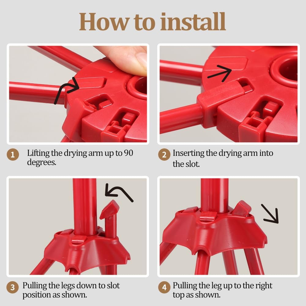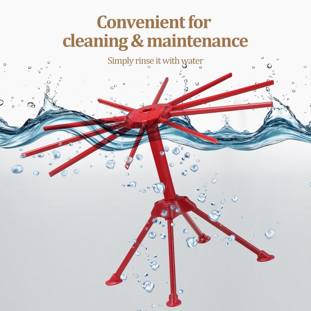 Ourokhome Collapsible Pasta Drying Rack, Plastic Foldable Homemade Fresh Spaghetti Stand Dryer Noodle Hanger for Kitchen with 10 Arms, Stable, Easy Storage, Quickly Set Up (Red)
