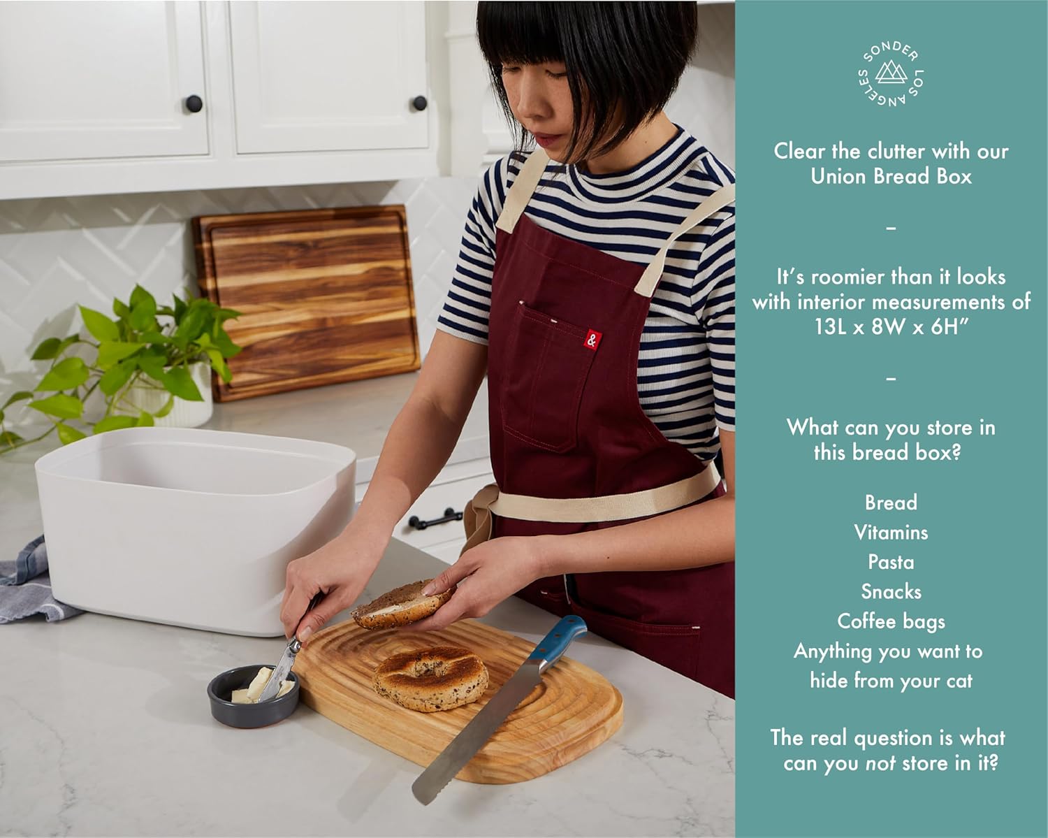 - SLEEK AND MODERN – Elevate and declutter your kitchen with this modern and reimagined take on a classic kitchen staple. Inspired by Japanese minimalism, this bread box boasts a sleek and sophisticated silhouette that will suit any kitchen.