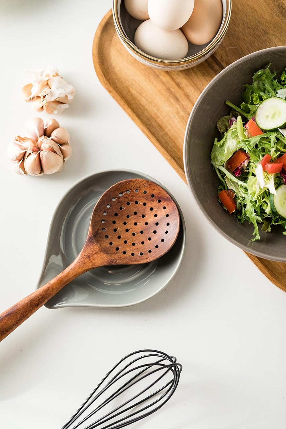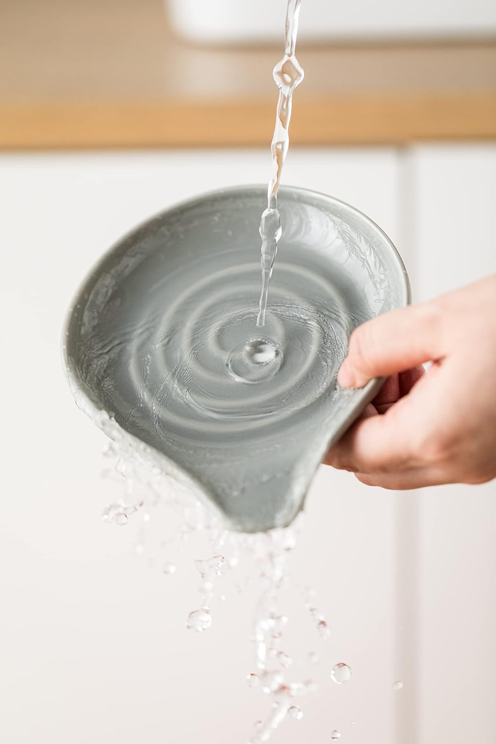Spoon Rest for Kitchen Countertop Porcelain Spoon Holder for Stove Top Large Holder for Spatula, Spoons or Tongs, Framhouse Decor, Gray