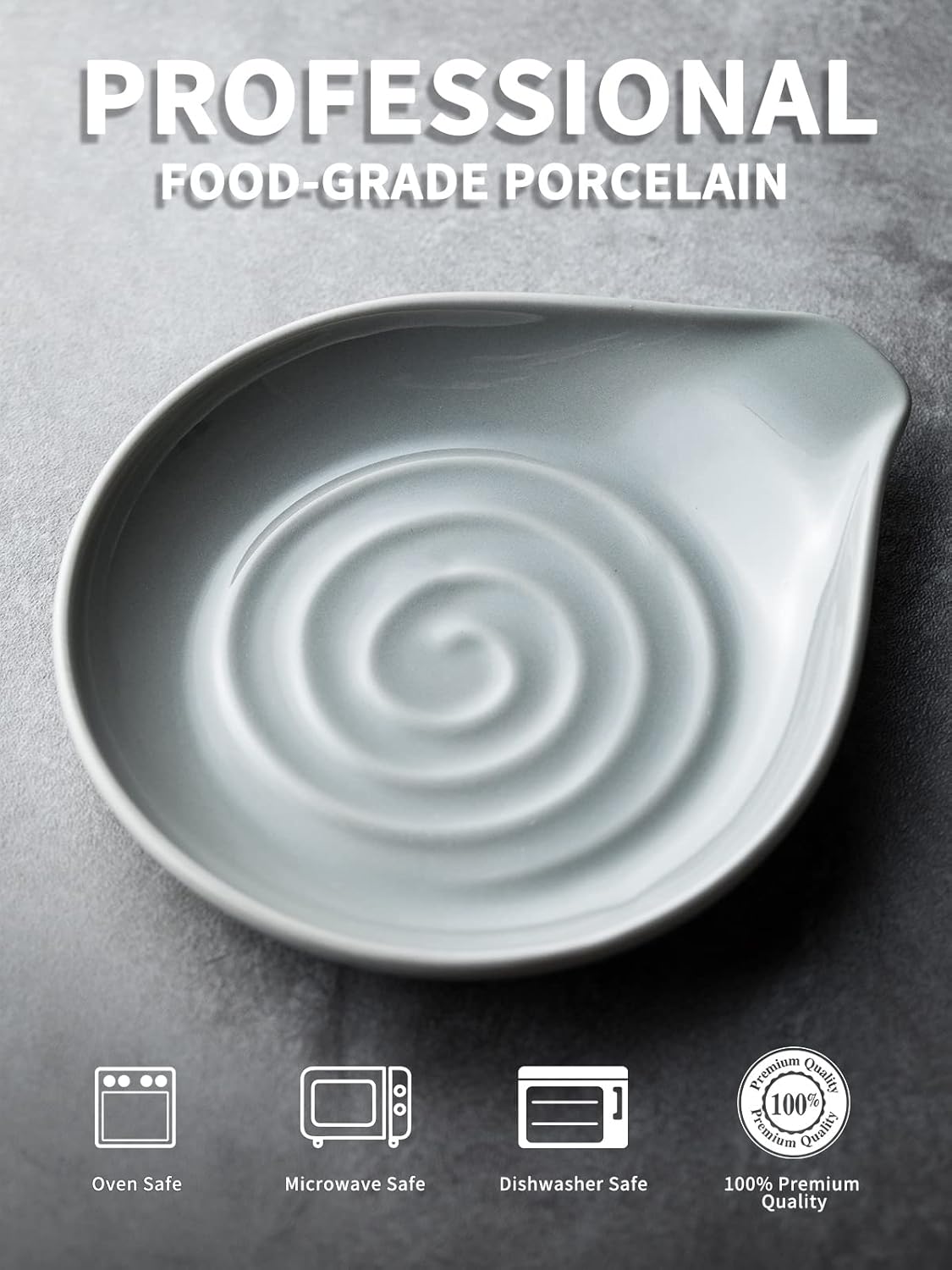 - Premium: Kitchen spoon rest is made of porcelain and crafted from high-quality glazed,will not melt from the heat on kitchen stove top. Compares to plastic utensil rest and some of stainless steel spoon rest, our cooking spoon rest is reliable and long-lasting