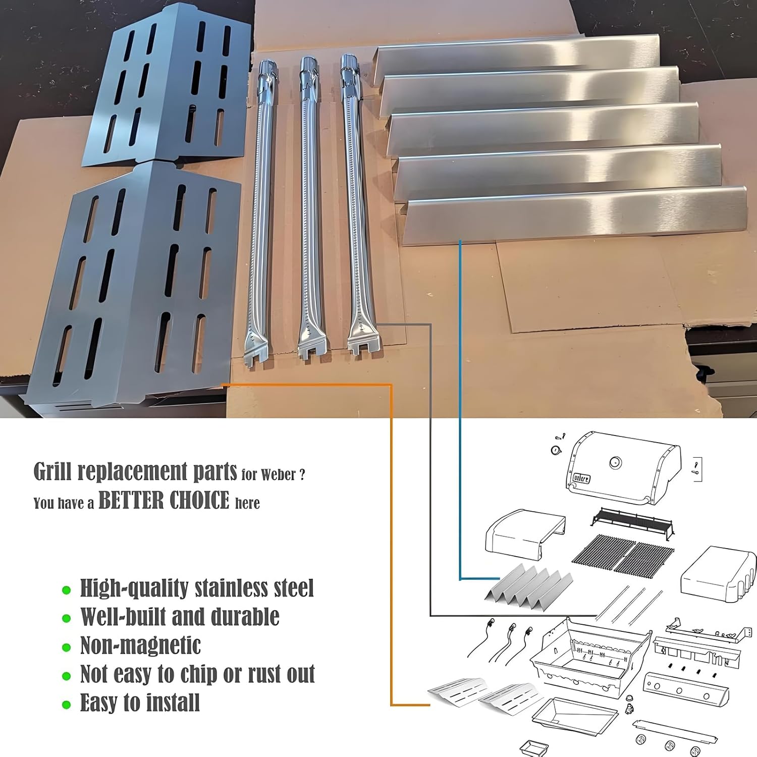 Genesis Grill Parts for Weber E310 E320 E330 EP310 EP320 EP330, 17.5” Flavorizer Bars 7620 Heat Deflector 7622 Burner Tube 62752 for Weber Genesis 300, Grill Replacement Parts for Weber Accessories