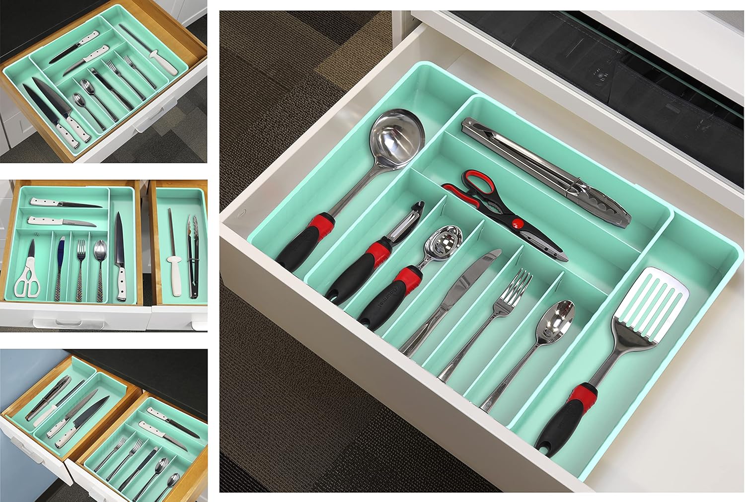 Simple Houseware Expandable Kitchen Drawer Flatware Organizer, Turquoise