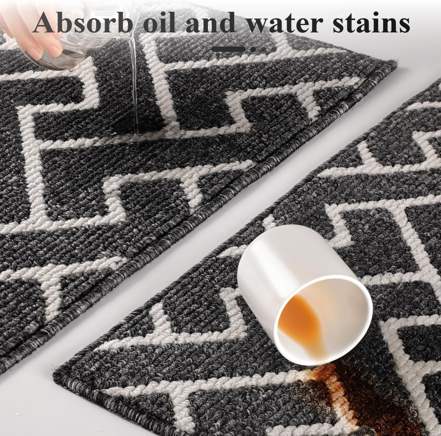 hicorfe Kitchen Rugs and Mats Sets,Super Absorbent Polypropylene Non-Slip Rug,Soft Comfort Floor Mat,Washable for Kitchen,Hallway,Office,Sink,Laundry(24" x 35",Black)