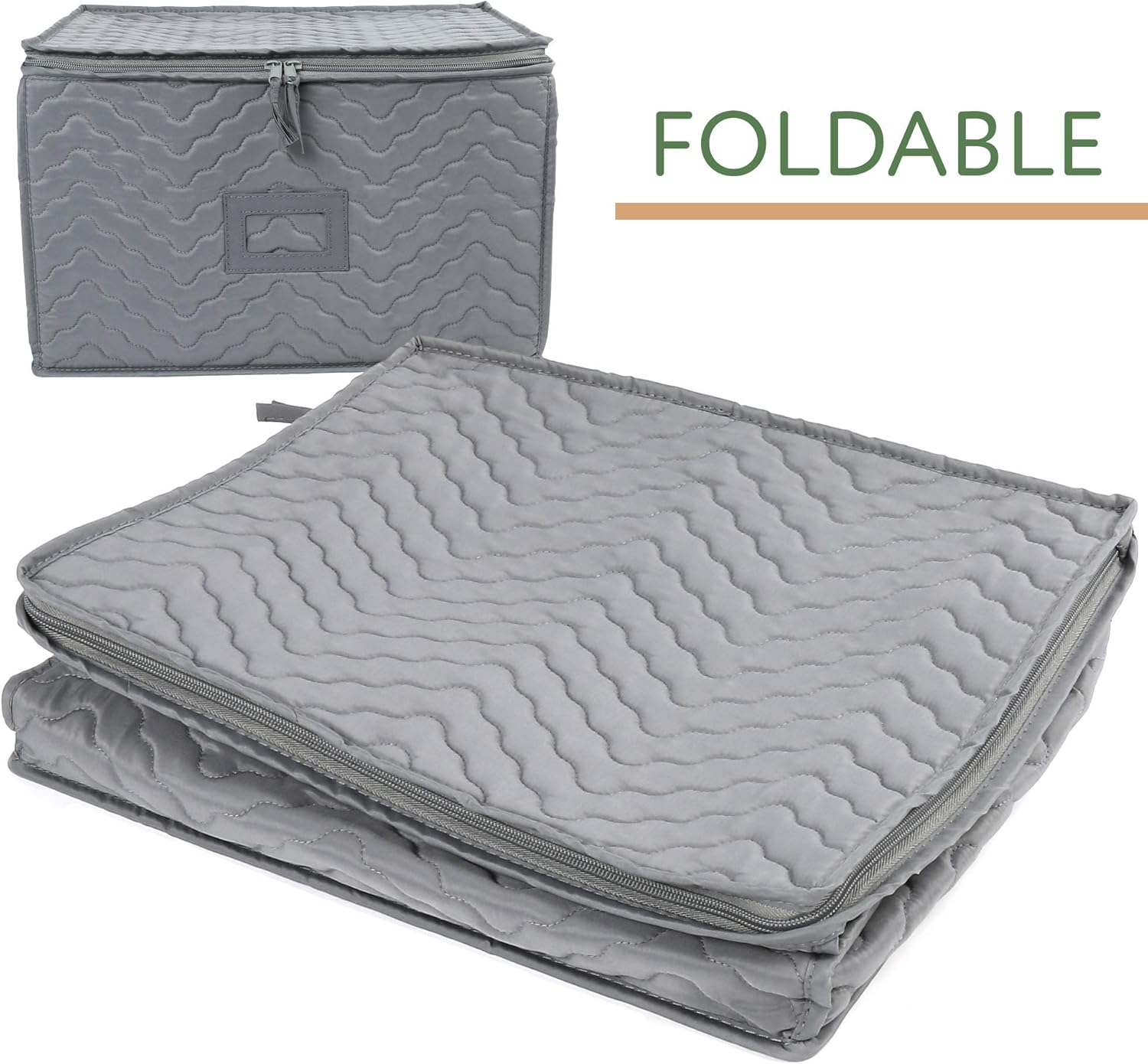 LotFancy Stemware Storage Containers, 2-Pack, Deluxe Quilted Storage Case with Dividers for 24 - Wine Glasses, Champagne Flutes, Glassware, Drinkware Storage Box Chest, 15.5”x12.5”x 10”, Gray