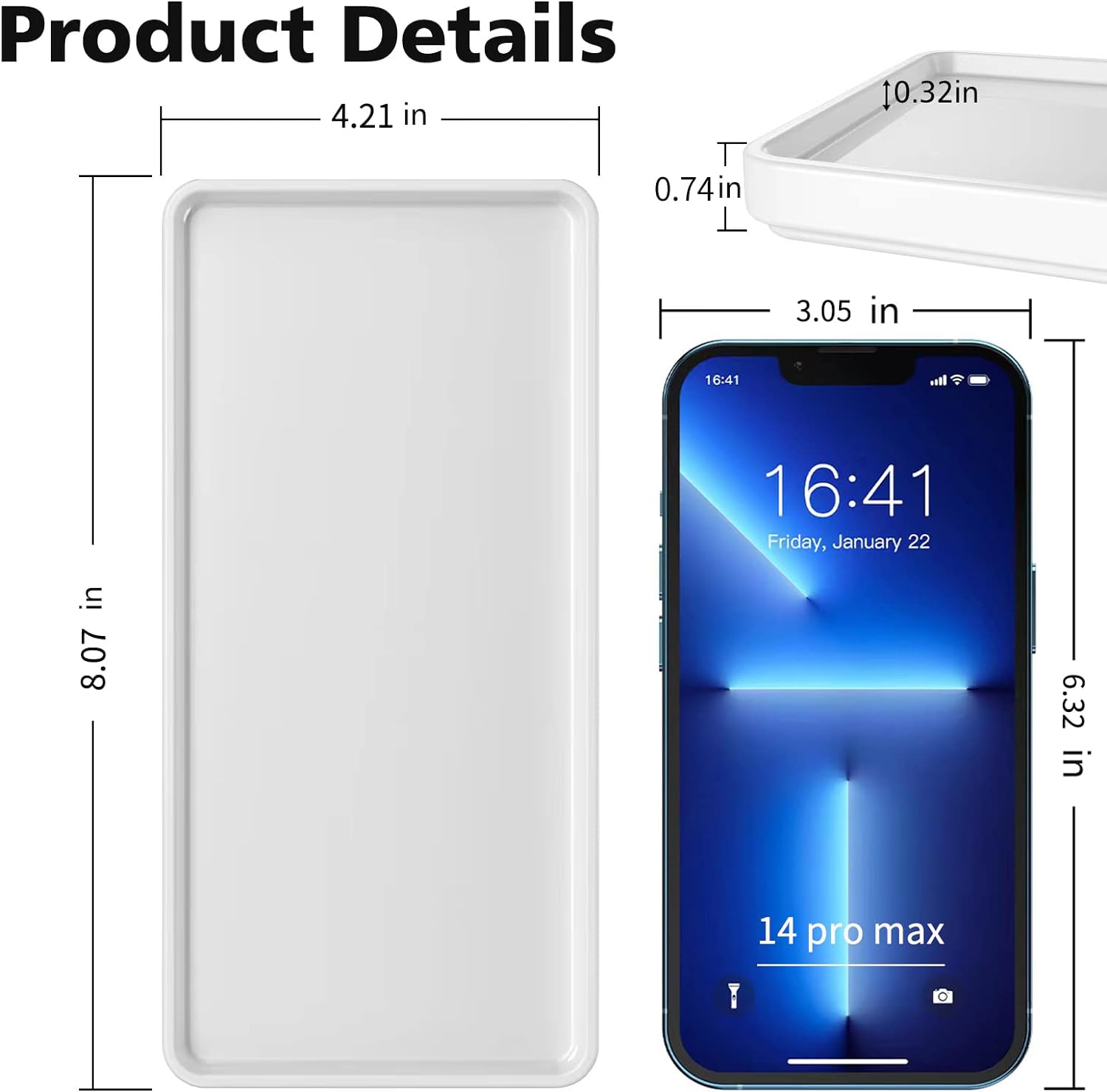 - SIZE & COLOR: The rectangle tray outside size: 8.07"x4.21"x0.74",set of 1; Color: White