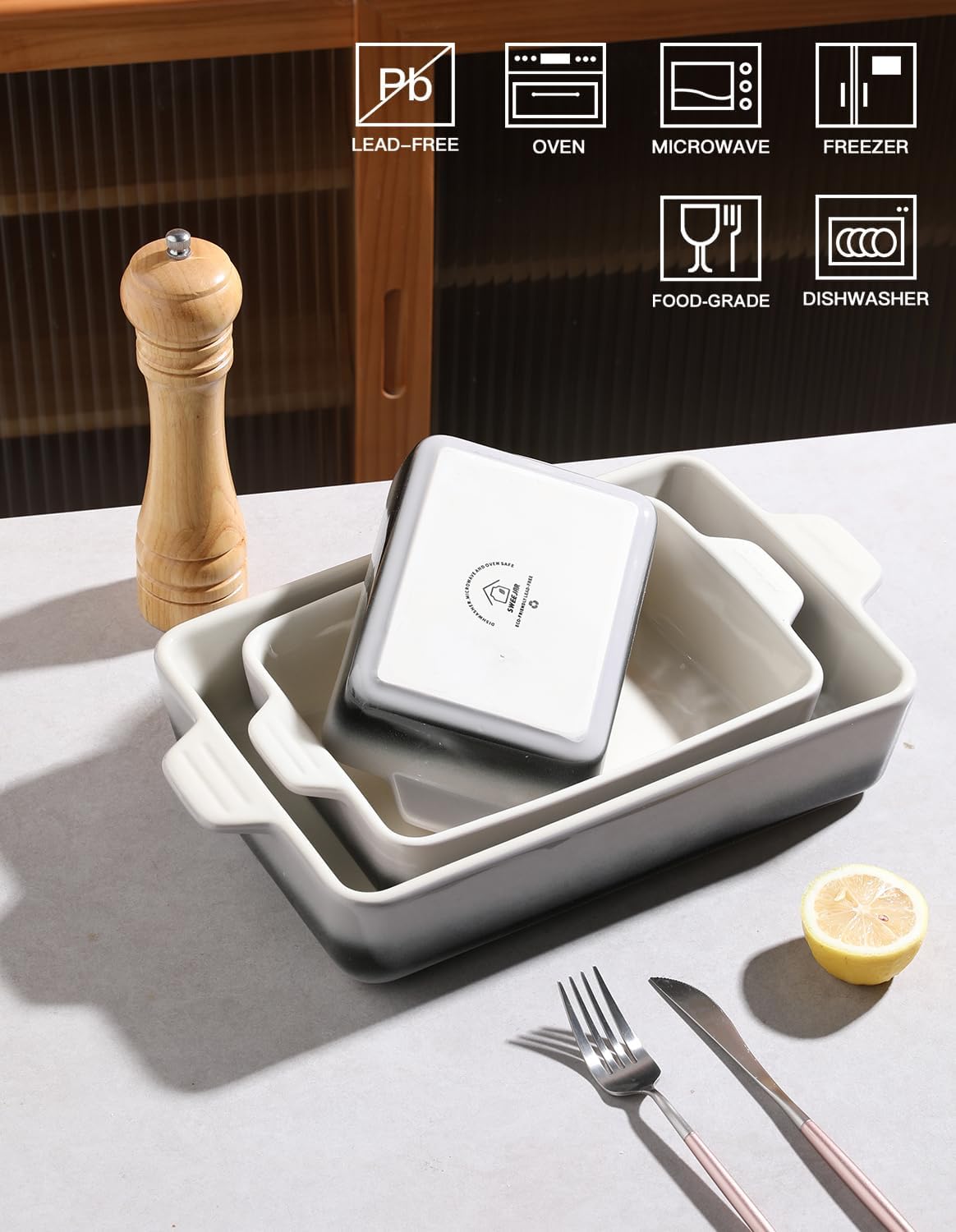 - Safe and Durable: Made of LEAD-FREE pro-grade ceramic,our baking pans are are durable and long-lasting. They are safe to use in dishwashers, refrigerators, microwaves, and ovens, ensuring convenience and peace of mind in your kitchen.
