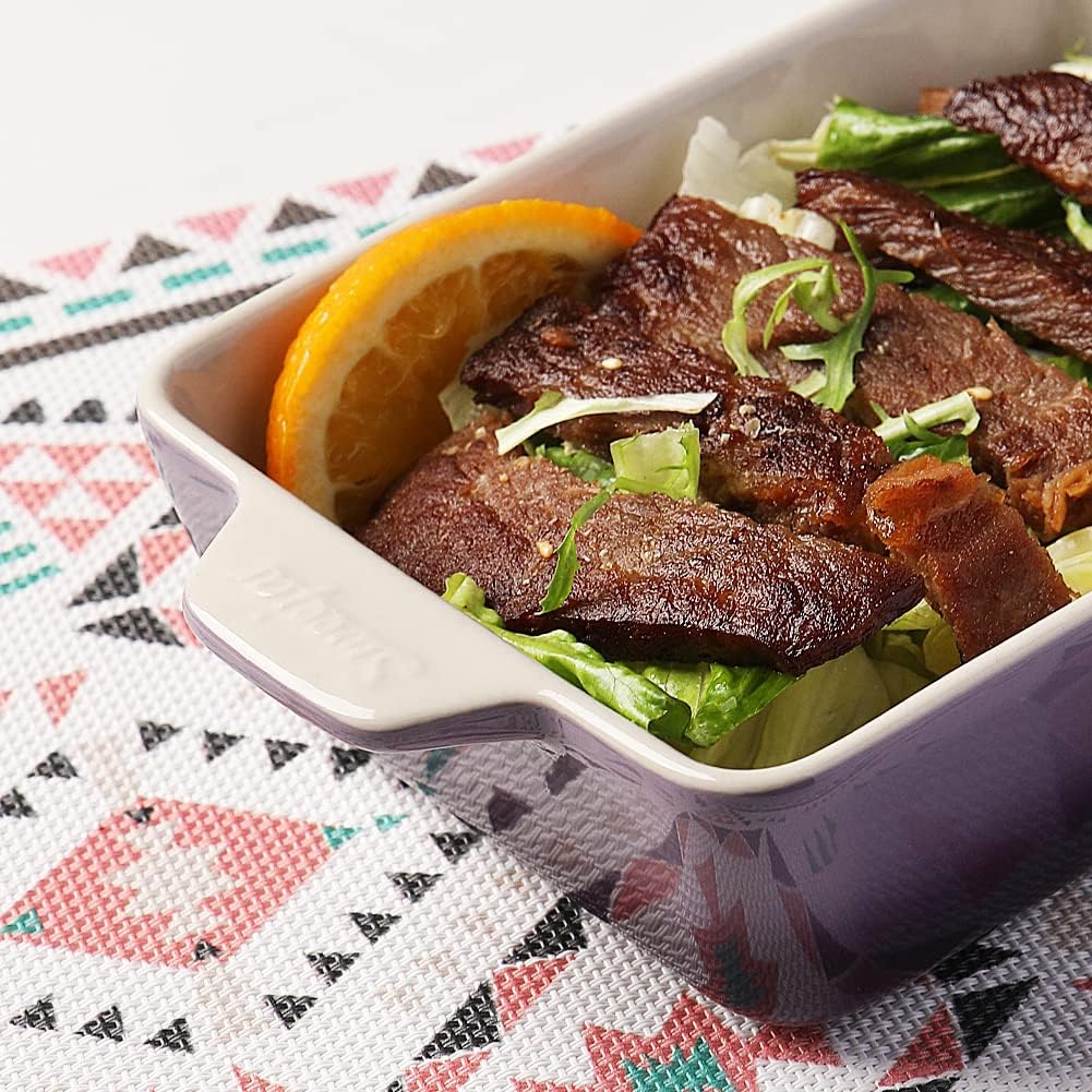 - 【Stylish Rectangular Baking Dish】The rectangular baking dish is equipped with a double handle design for easy food transport from the oven to the table. It is also a charming decoration in your kitchen and dining table which may impress your guests!