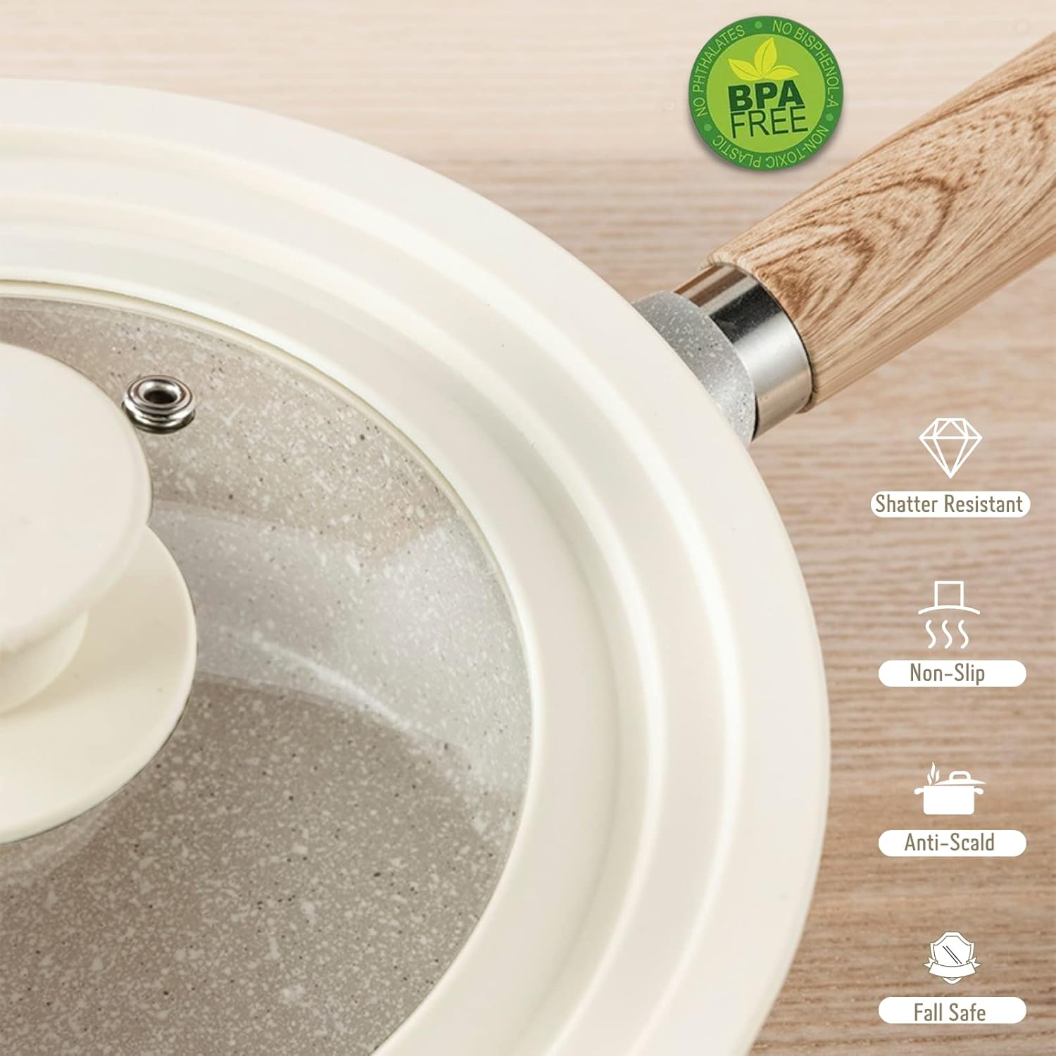 - CONVENIENT DESIGN: Clear glass construction lets you monitor cooking progress without lifting the lid—locks in heat and moisture. Features a heat-resistant round knob for a secure, stable grip, making lifting safe and effortless (no burnt hands).
