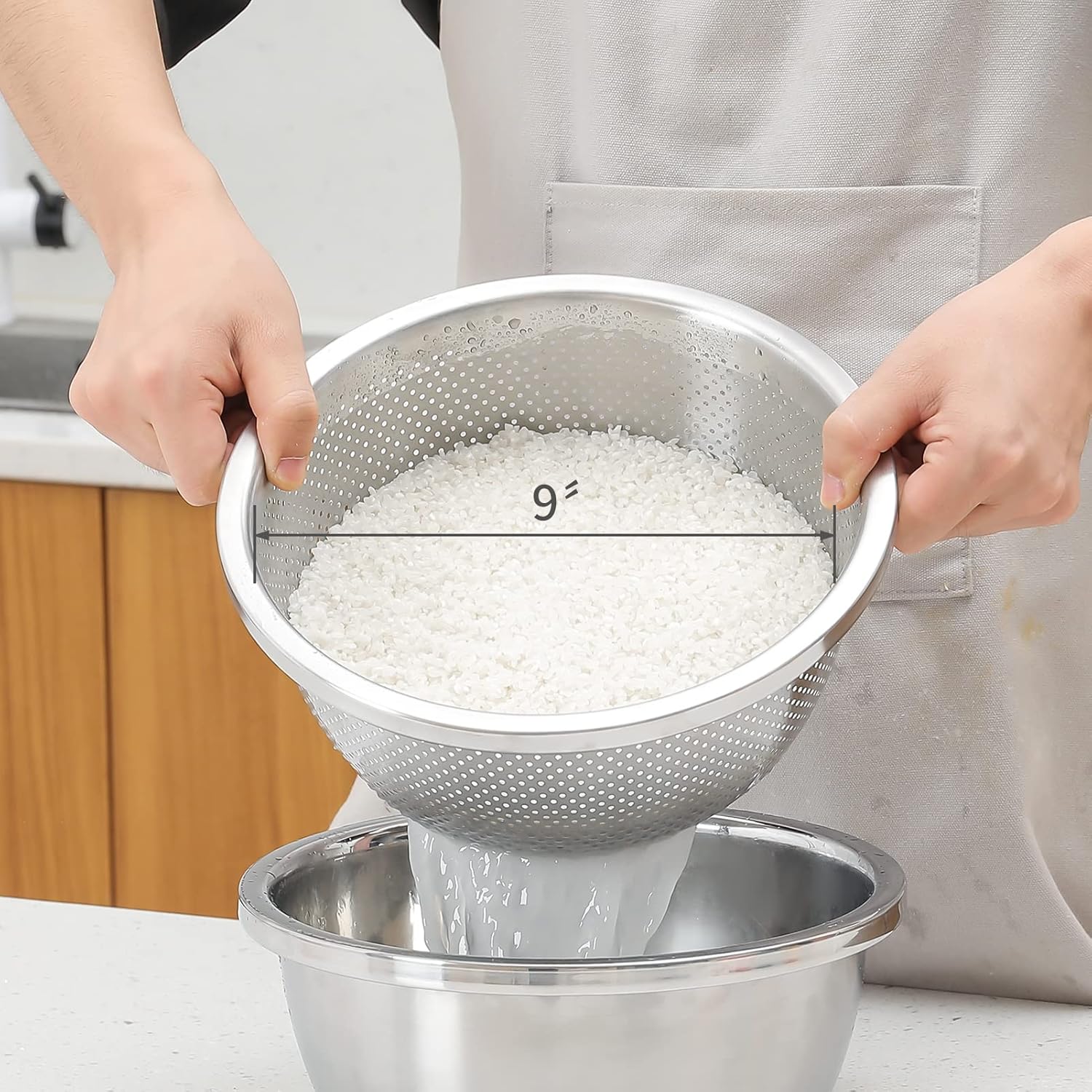 304 Stainless Steel Microporous Colander, 3.5QT Large Capacity with Mixing Bowl For washing vegetables fruit and rice and for draining cooked pasta(2PC)