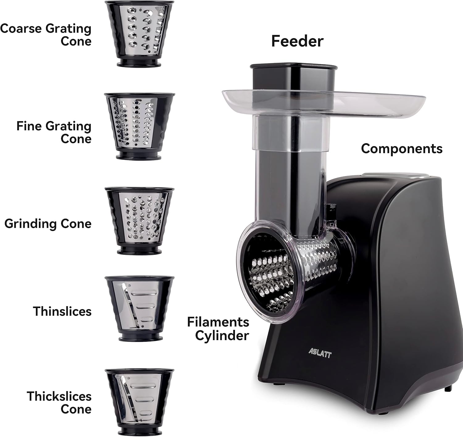 - Wide Range of Use: the ASLATT Electric Slicer is suitable for vegetables, fruits and cheeses; The salad maker machine can make delicious and healthy salads, soups,desserts, chips, shaved ice and many more food by pressing one button