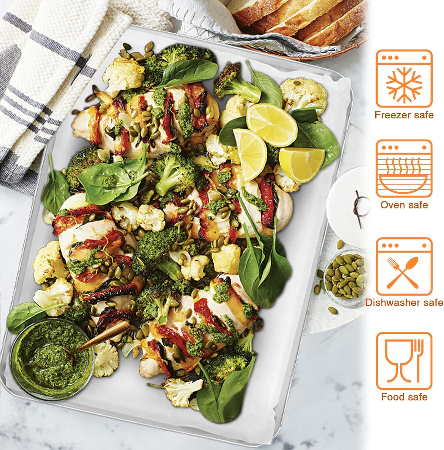- 【HEALTHY & STURDY】Made of pure stainless steel without toxin, Ensure no harmful substances leaching on to food at high heat baking, Heavy-gauge steel stands up to the rigors of daily cooking, Superior to Teflon/aluminum/nonstick coating pan, Durable enough to last a lifetime