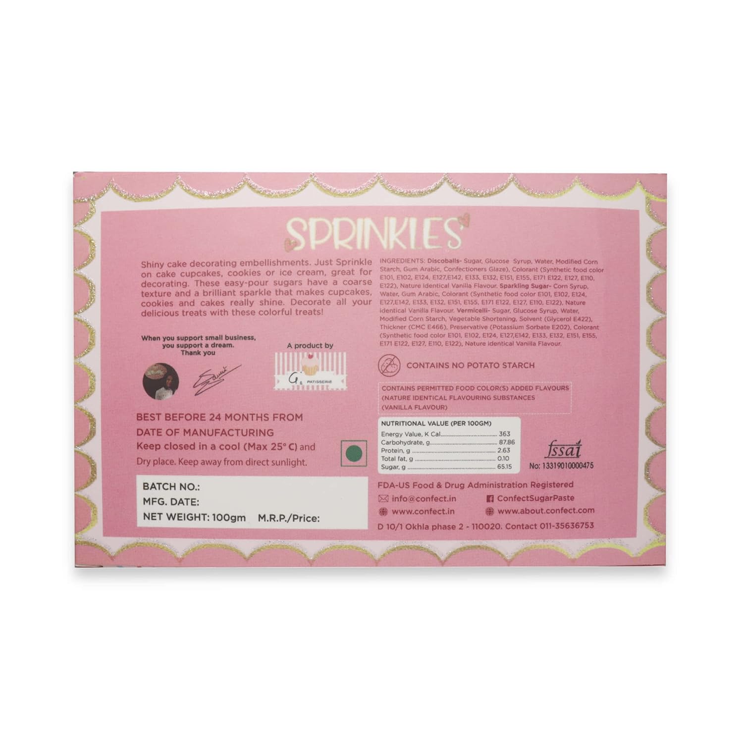 - Sprinkles are Perfect for all Celebrations - Birthdays, Anniversary, Graduation, Weddings & more Our Sprinkles are made with Pure Cane sugar only & contain no fillers All our Sprinkles are Handmade & Handcrafted