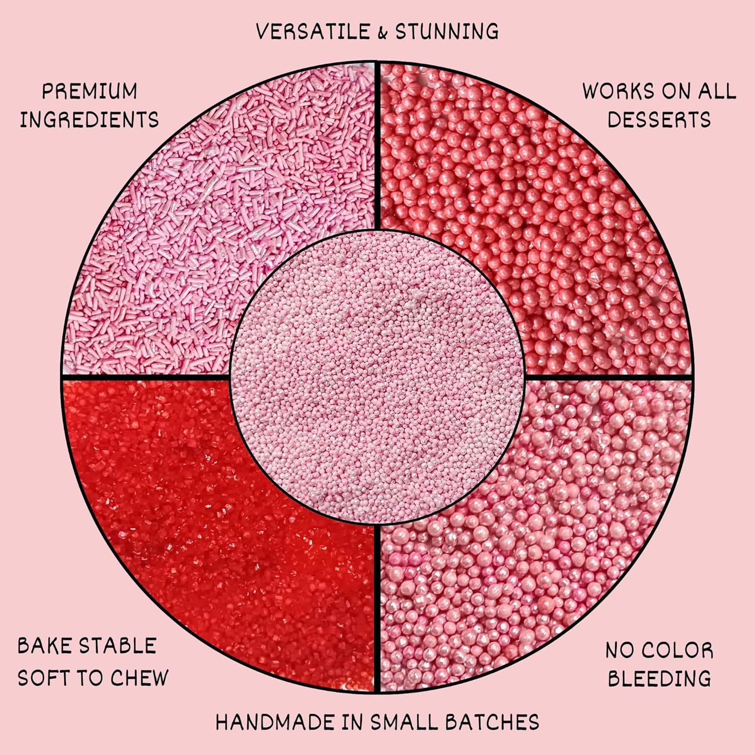 Confect Sprinkles for Cakes & Cupcakes Decoration Assorted pack of 5 Pink Pop Sprinkles Mix Blush Pink, Baby Suger & Coral Dragees Baby Pink Jimmies Vegan, Gluten-Free, Nut-Free, Soy-Free, Dairy-Free , Handcrafted Sprinkle- 5 Oz
