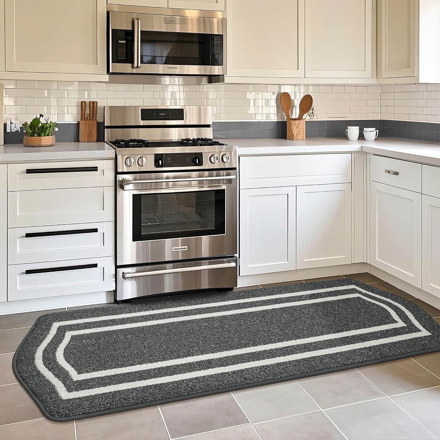 COSY HOMEER Long Kitchen Floor Mats for in Front of Sink Super Absorbent Kitchen Rugs and Mats 24"x79" Non-Skid Kitchen Mat Standing Mat Washable,Polypropylene,Dark Grey,Frame