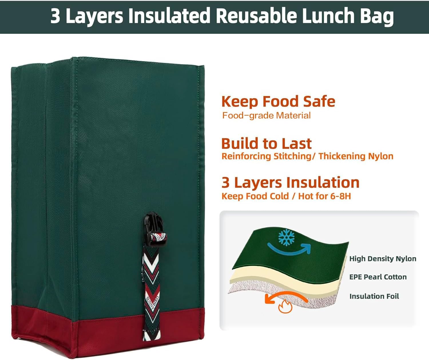 - Sturdy - by making double stitched seams and putting reinforcing material on lunch bags, strengthened inner lining and handle strap will make your bag durable, sturdy, and provide years of long-lasting values.
