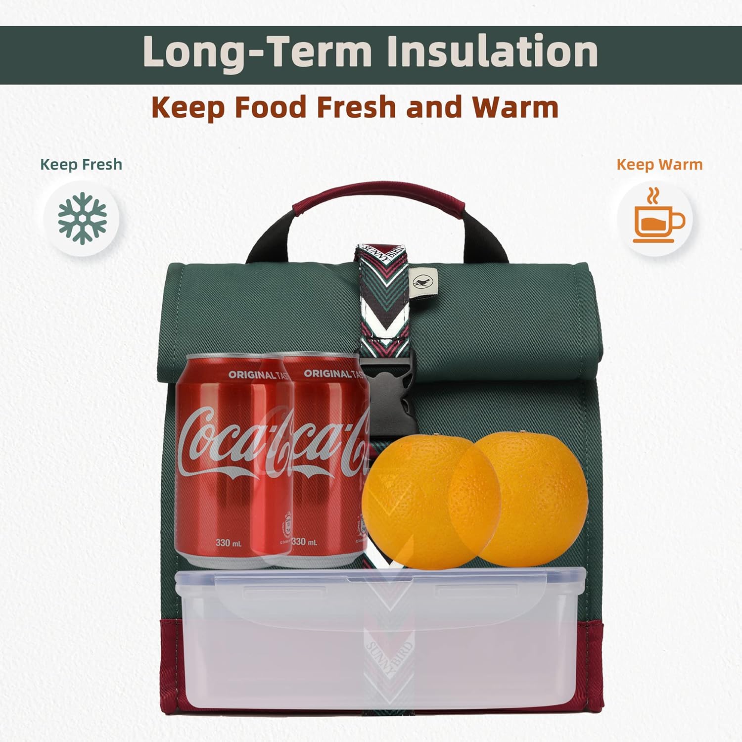 - Medium size and versatile - measured 8.5" x 6" x 9" (length x width x height) (length x width x height), this insulated lunch bag has a capacity of packing one meal set or 12 cans of 330ml soda. SUNNY BIRD’s lunchbox bag embodying the adventurous mood for every outing, versatile & go great with any outdoor activities. Whether attending a live event, going to an amusement park, taking classes in school, headed out on a hike or even to work, we have your back.