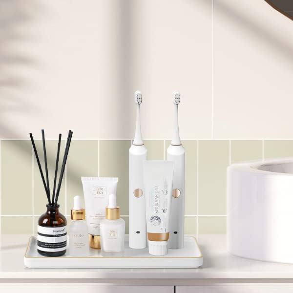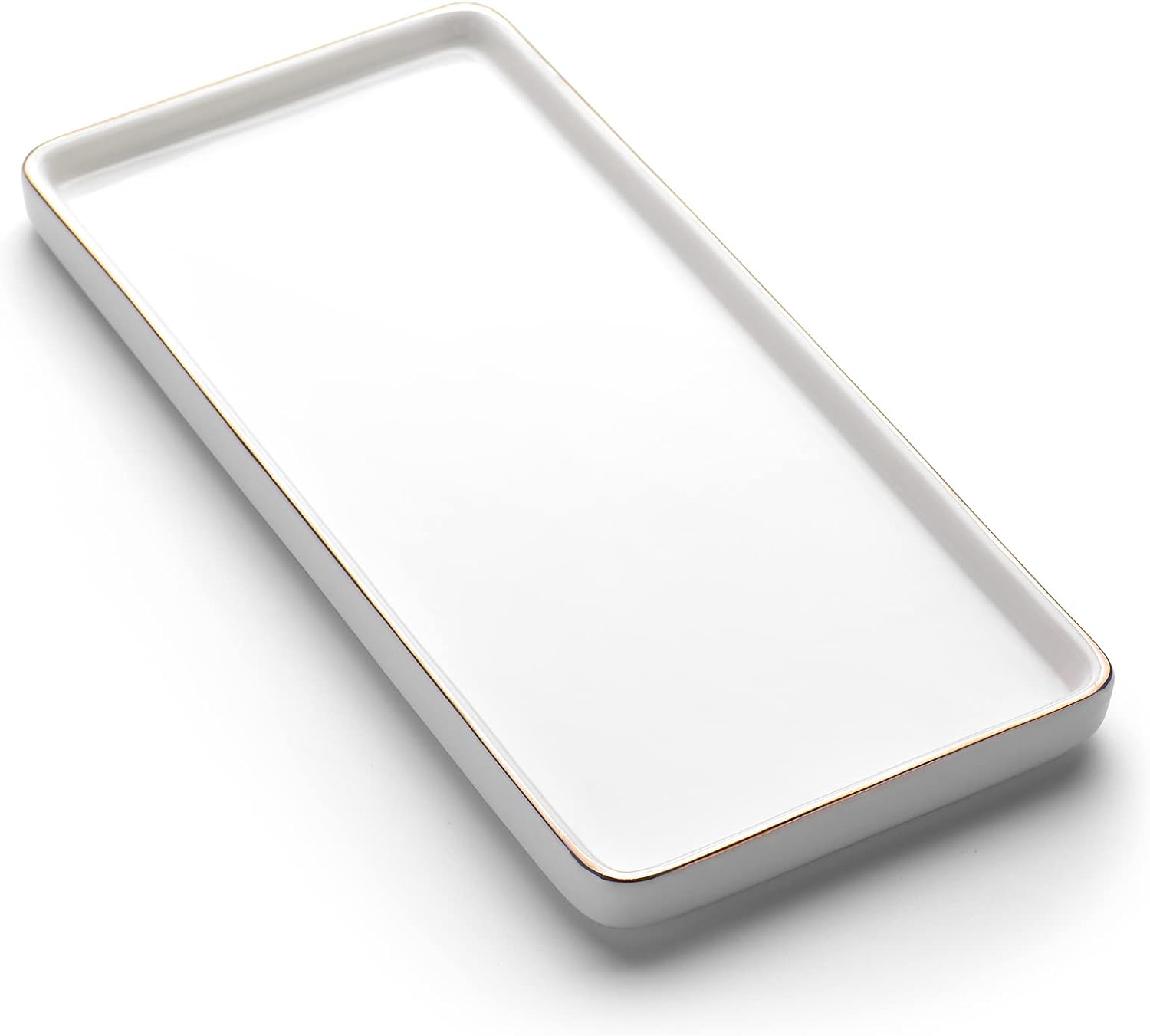 Gurygo 10" Bathroom Tray, Ceramic Vanity Trays for Bathroom, Small Ceramic Tray, Kitchen Soap Trays for Kitchen Counter (White with Gold-Edged, 10",Set/1)