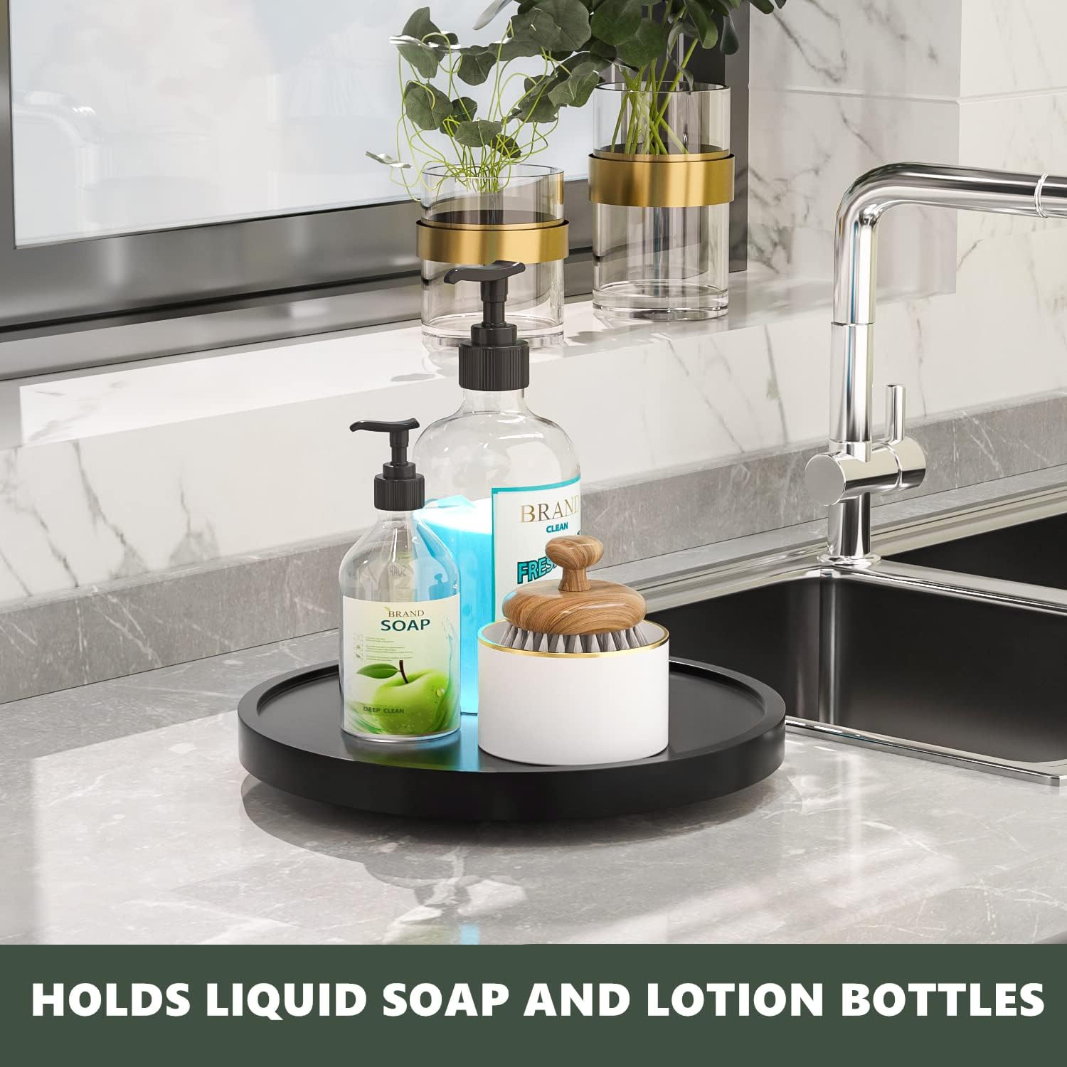 Turntable Vanity Tray 10 Inch for Perfume Candle, Bamboo Kitchen Sink Countertop Organizer Keep Glass, Sponge and Soap Bathroom Coffee Table Decorative Black (VFLZ)