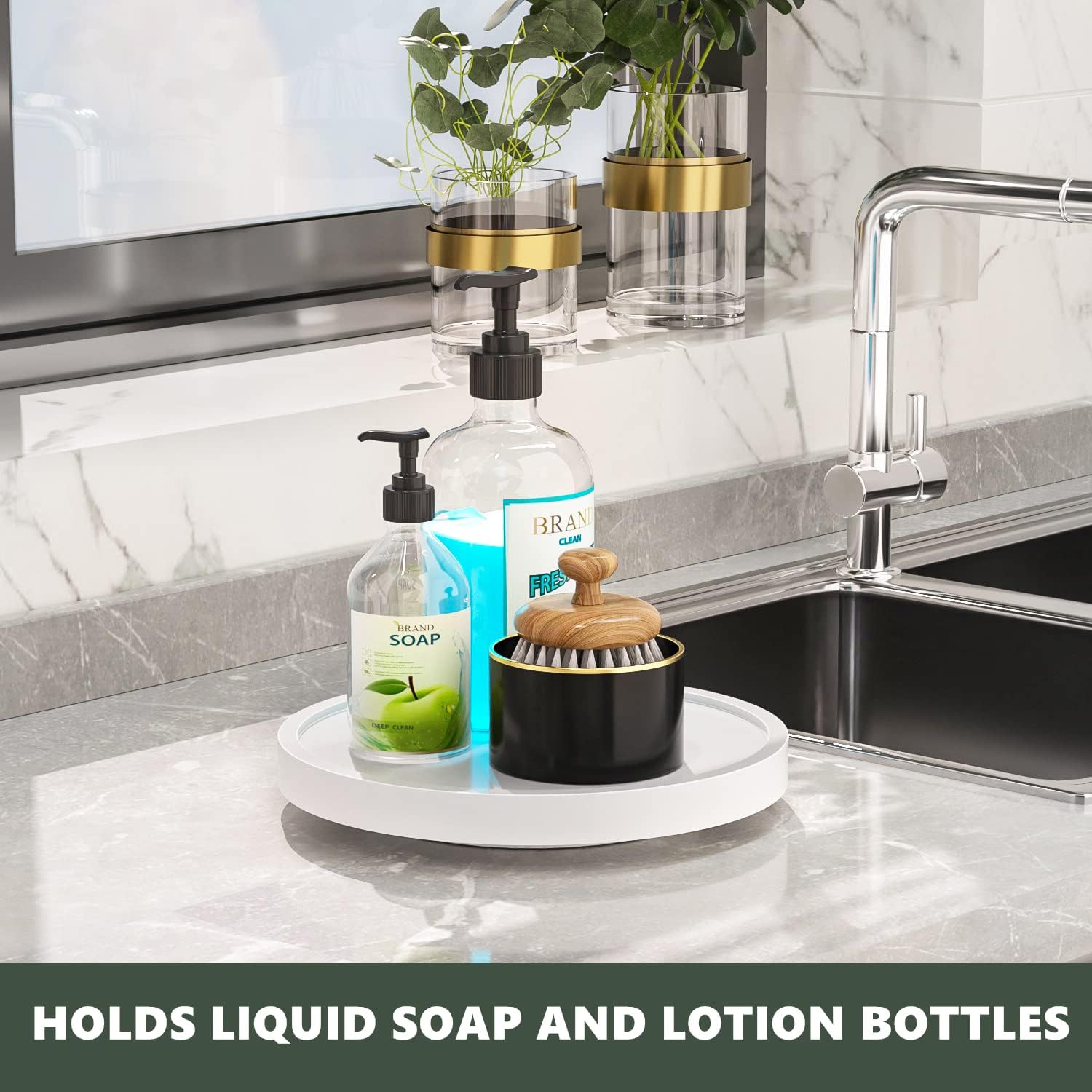 Turntable Vanity Tray 9 Inch for Perfume Candle, Bamboo Kitchen Sink Countertop Organizer for Keep Glass, Sponge and Soap Bathroom Countertop Organizer White
