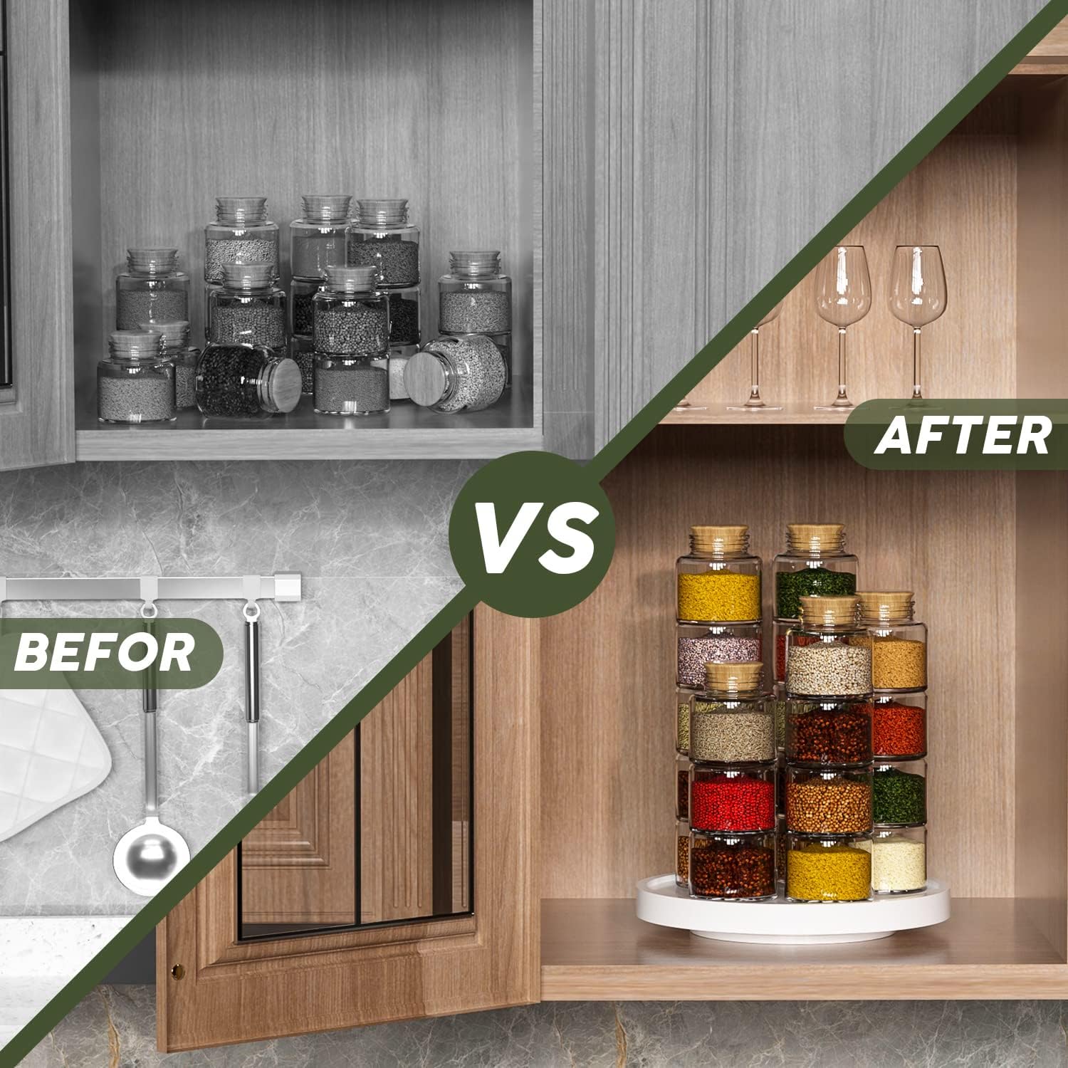 - Cooking assistant: lazy susan organizer perfect for organizing salt, vinegar, pepper, olive oil close to stove and easily reached; Center piece for table to hold napkin holder, honey, cinnamon, sugar and a vase; Helps keep table nice and organized