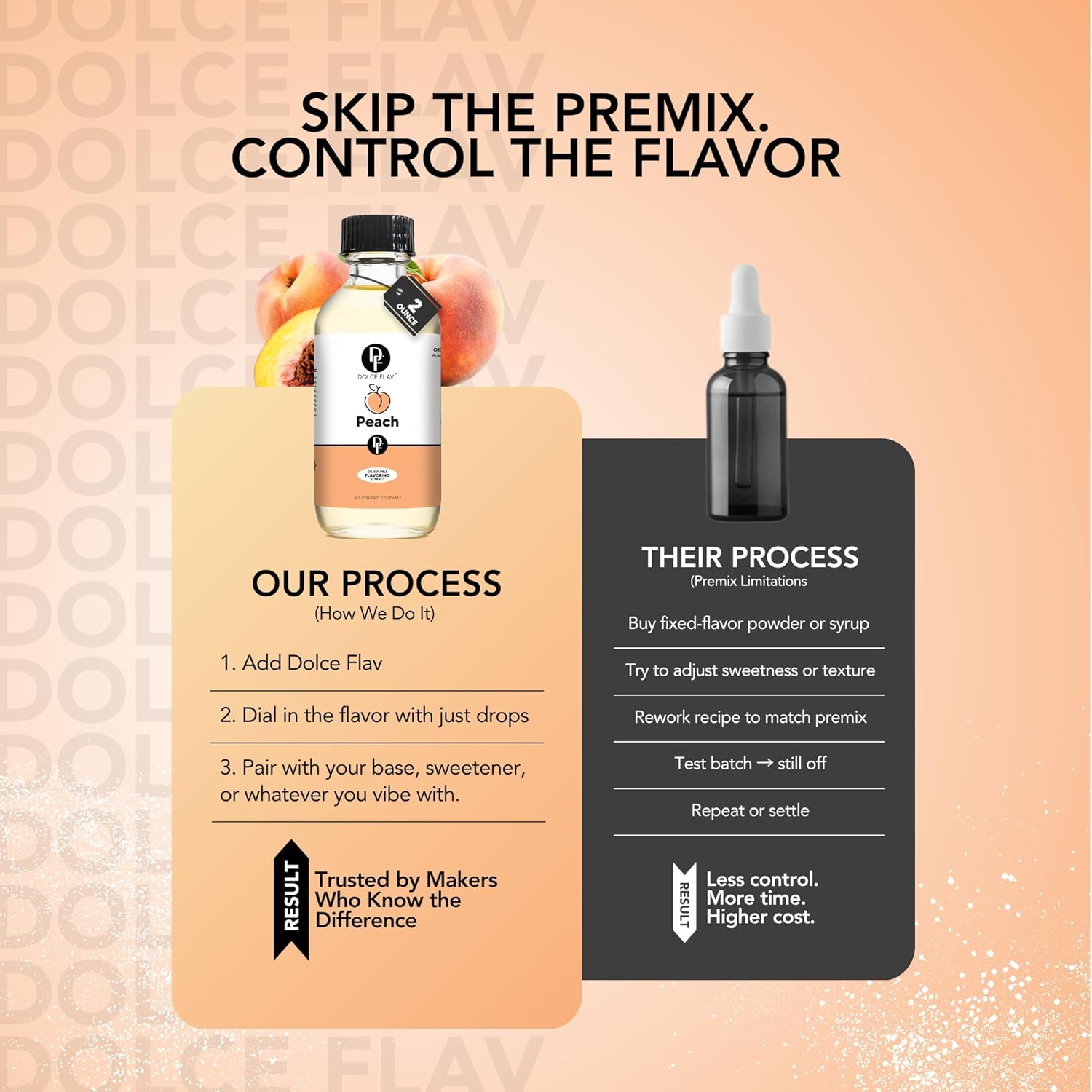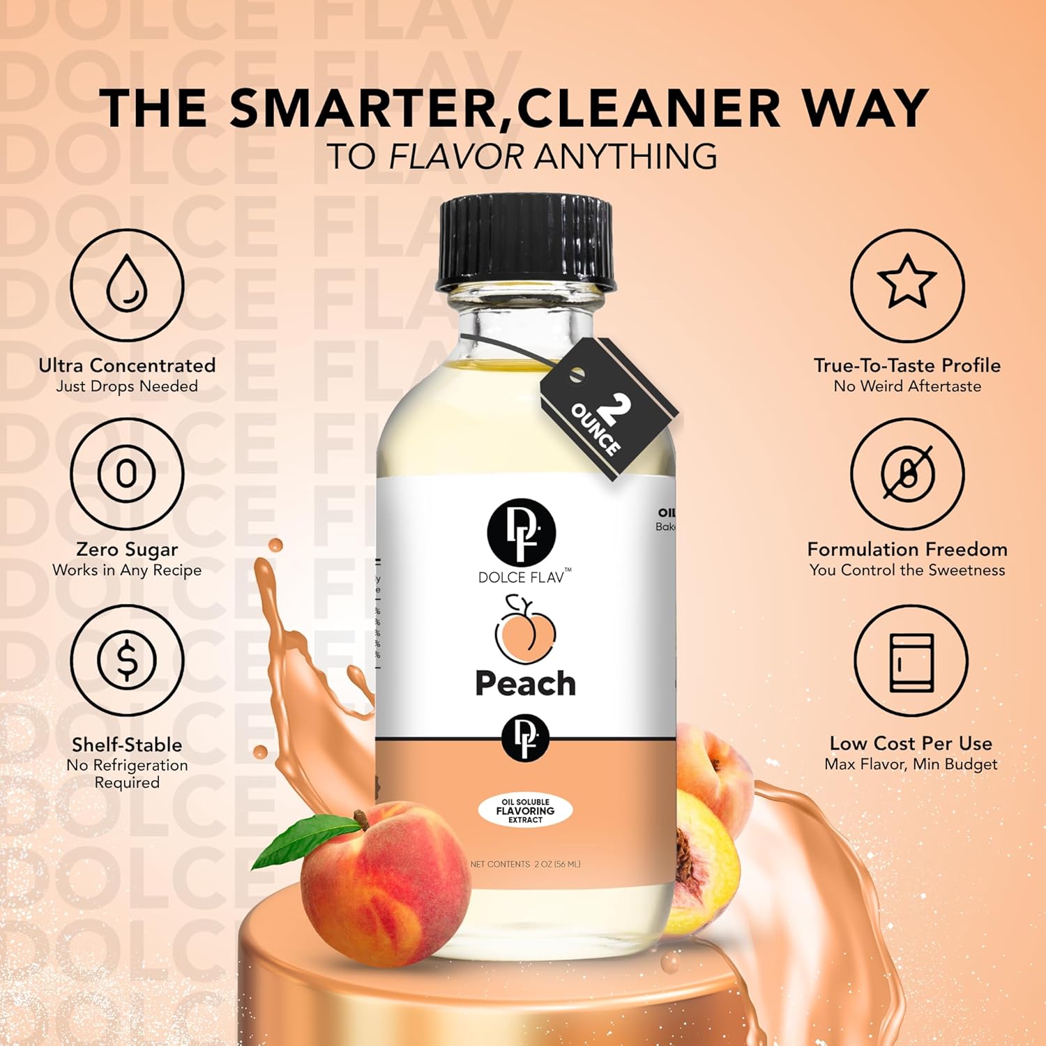 Dolce Flav Peach Extract (Oil-Soluble) 8 oz – Kosher, Sugar-Free, Concentrated Juicy Peach Flavoring for Baking, Chocolates & Desserts, Includes Measured Dropper