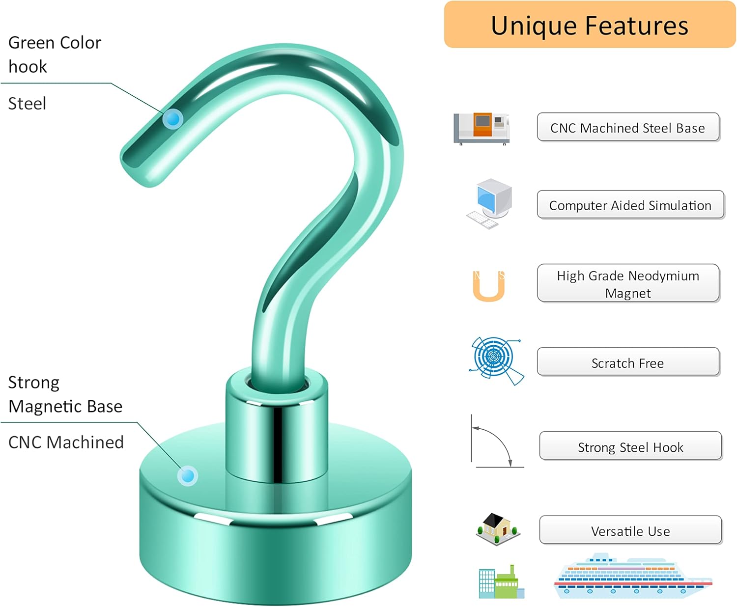 - ✔ VERSATILE USE- Neosmuk’s strong neodymium magnetic hooks were endowed with a strong capability for holding various items wherever there is iron or steel. This magnet hook is a perfect magnetic key holder. You can also hang your tools next to the toolbox with this magnetic hook. Our magnetic hooks are great for grill, pot, cup, utensils, and oven.